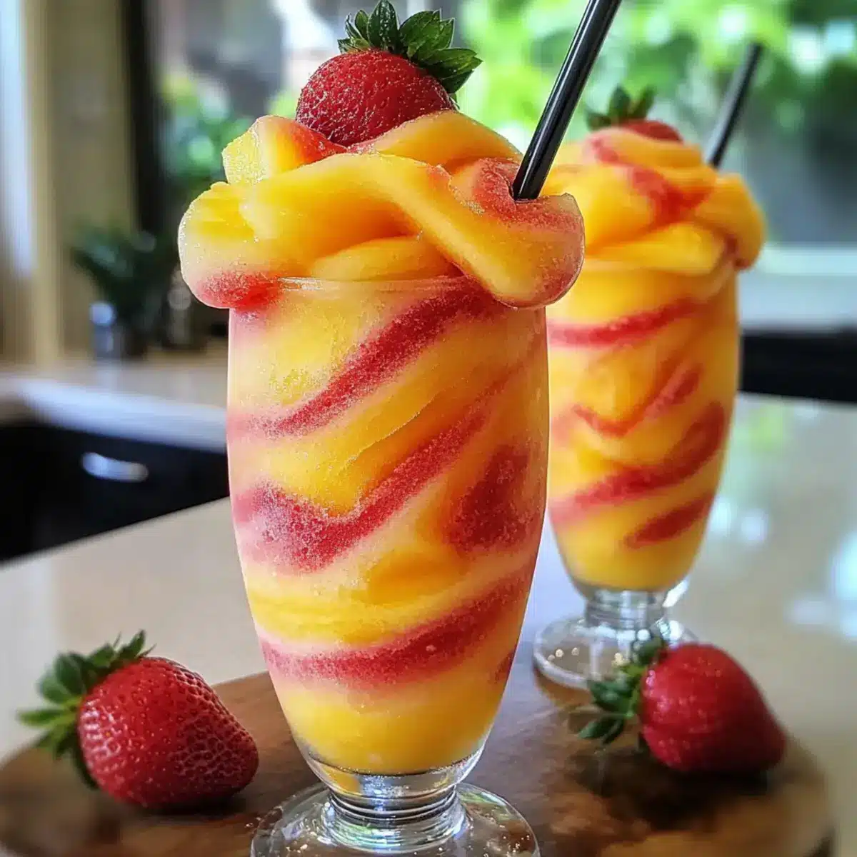 Einfach zuzubereiten: In nur 10 Minuten sind diese Ananas Erdbeere Wirbel Slushies fertig – ideal für spontane Momente!