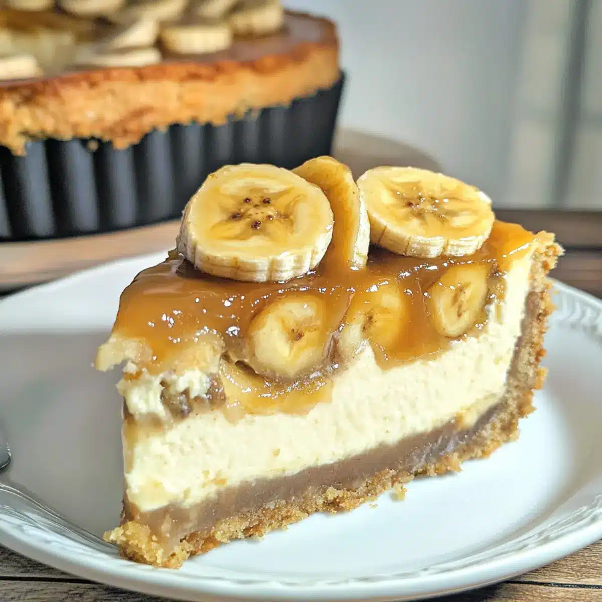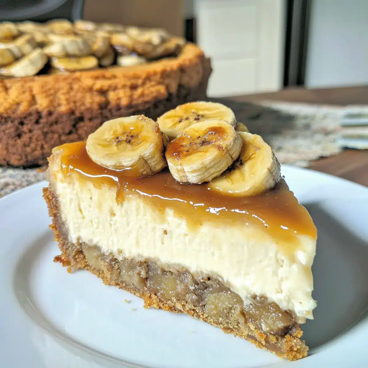 Dieser Bananenbrot-Käsekuchen ist perfekt für die Vorbereitung, besonders für beschäftigte Kochliebhaber! Du kannst den Bananenbrotboden bis zu 48 Stunden im Voraus backen und fest verschlossen im Kühlschrank aufbewahren, um die Frische zu bewahren. Die Käsekuchenfüllung lässt sich ebenfalls bis zu 24 Stunden vorher zubereiten und im Kühlschrank lagern, um die Textur zu erhalten; achte jedoch darauf, dass der Frischkäse vollständig weich ist, um eine glatte Mischung zu gewährleisten. Ergänze den Kuchen erst kurz vor dem Servieren mit dem karamellisierten Bananentopping, damit die Bananen ihre perfekte Konsistenz behalten. So hast du immer ein köstliches Dessert griffbereit, ohne dass es viel Zeit in Anspruch nimmt!