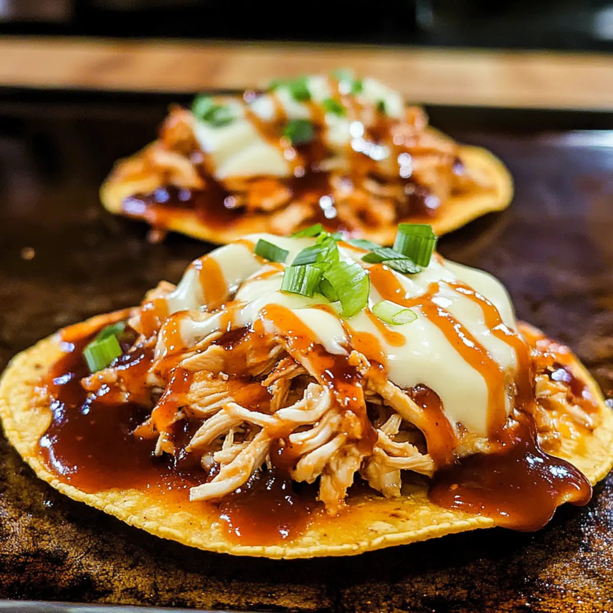 Die bunten Aromen und knusprigen Texturen verlässt mein Herz schneller schlagen, wenn ich an BBQ-Hühnchen-Tostadas denke. Diese unkomplizierte Köstlichkeit vereint zartes, in BBQ-Sauce eingelegtes Hühnchen mit geschmolzenem Käse auf knusprigen Tortillas. Perfekt für geschäftige Wochenabende, benötigt dieses Rezept nur 4 einfache Zutaten und lässt sich in weniger als 20 Minuten zubereiten – ideal für die ganze Familie! Diese Tostadas sind nicht nur ein schnelles Gericht; sie überzeugen mit einem herzhaften Geschmack, der jeder Mahlzeit eine besondere Note verleiht. Lust auf eine Inspiration, die den Wochenabend aufpeppen kann?