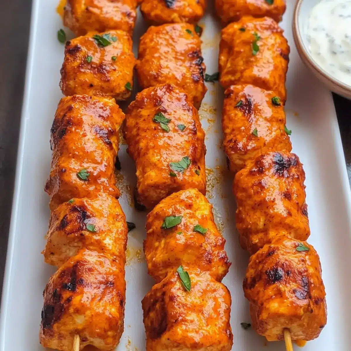 Wenn du bemerkst, dass die Kabobs nach dem Backen etwas trocken sind, könntest du versuchen, in der nächsten Runde etwas mehr Buffalo-Sauce in die Mischung zu geben oder sie während des Backens leicht zu bestreichen. Achte darauf, die richtige Innentemperatur von 74 °C zu erreichen und die Kabobs nicht zu lange im Ofen zu lassen, damit sie saftig bleiben.