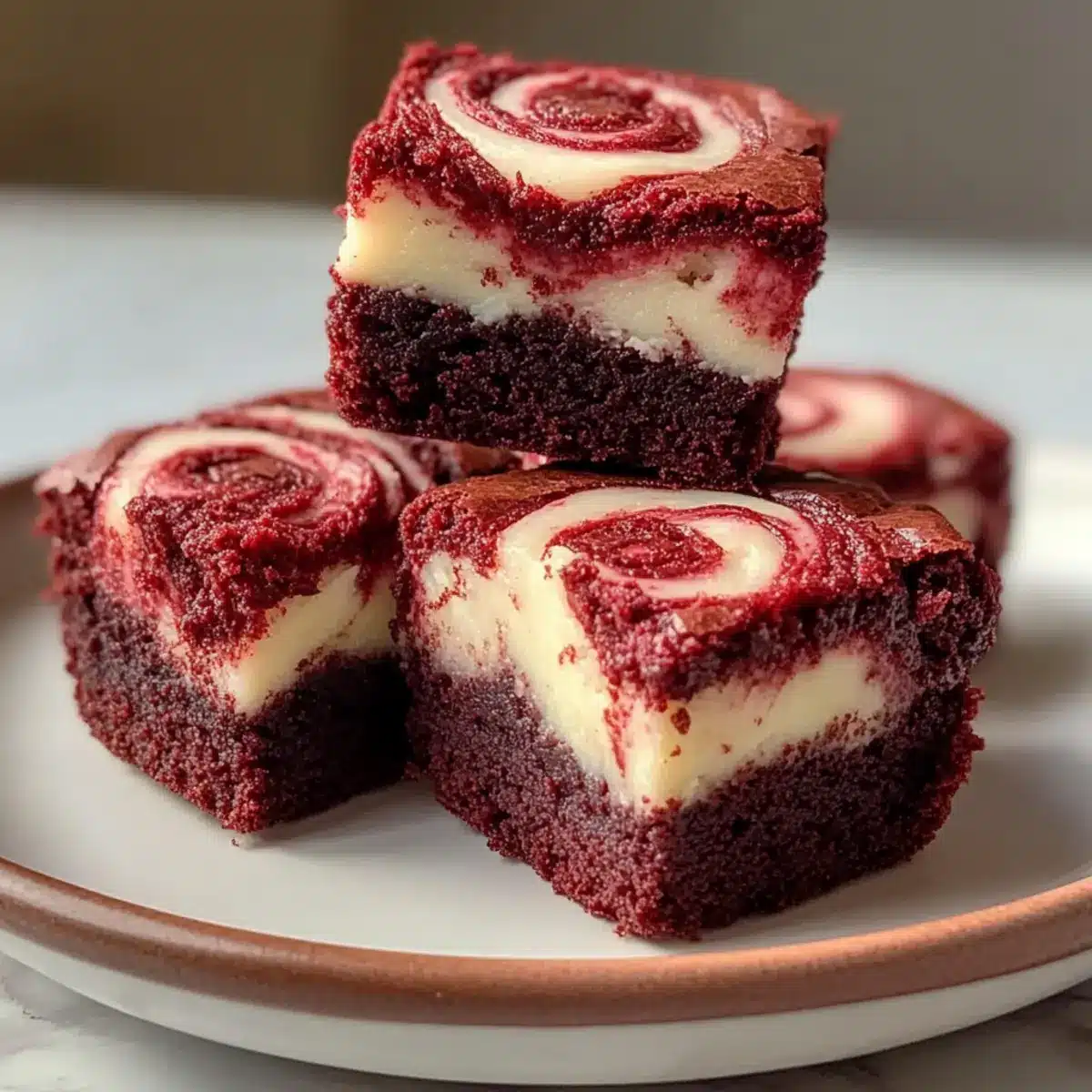 Rote Samt Brownie Bissen mit Frischkäse Swirl