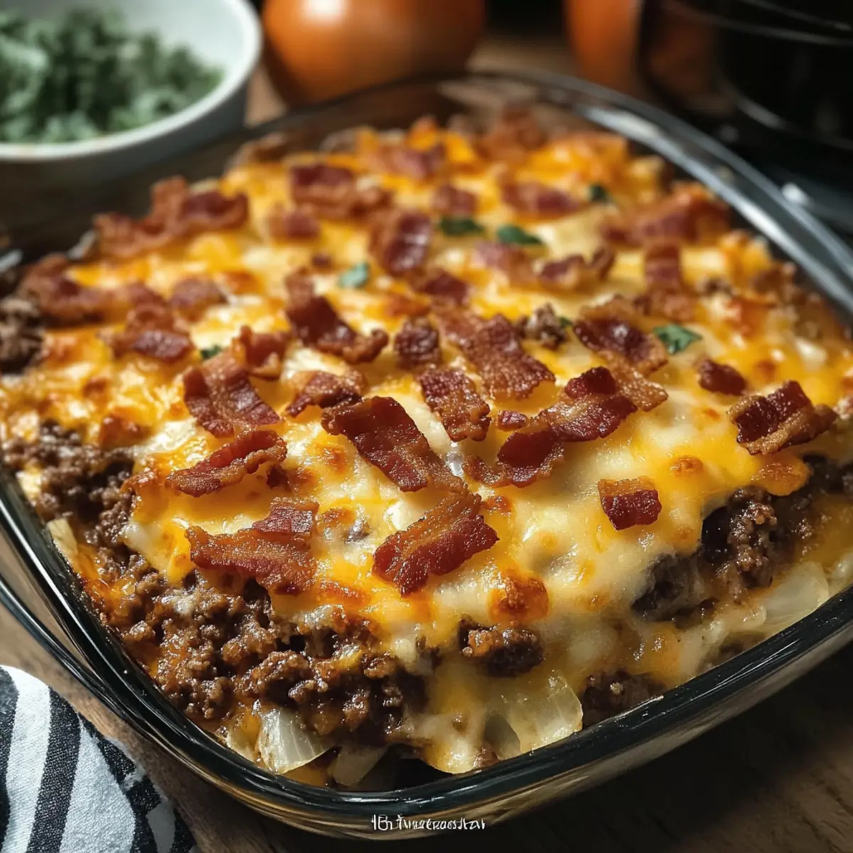Low-Carb Speck Cheeseburger Auflauf für Genießer