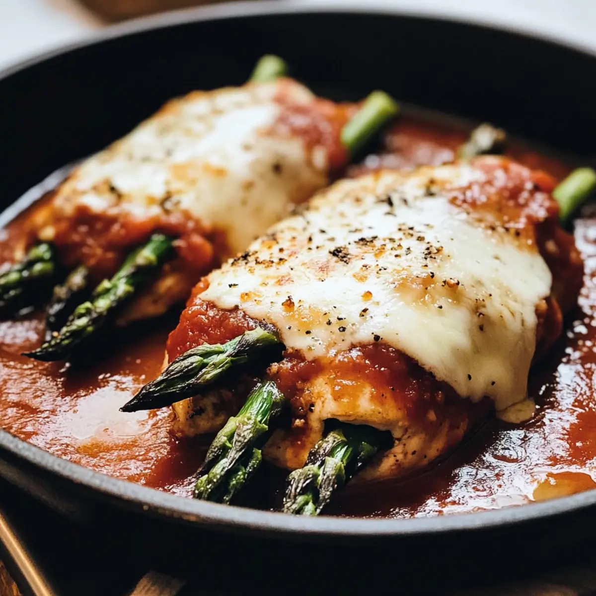 Spargel gefülltes Hähnchen Parmesan für ein schnelles Abendessen