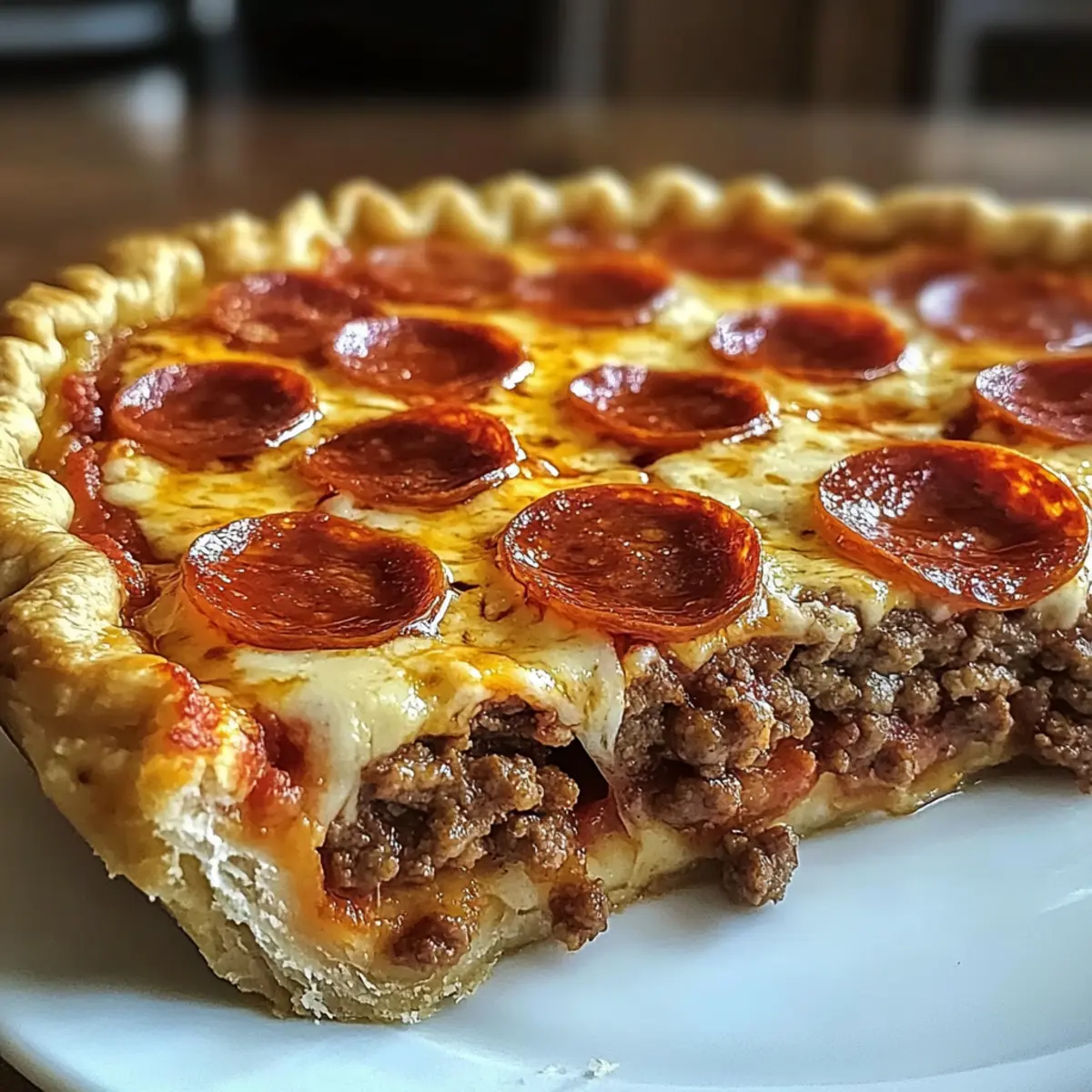 Tiefe Hamburger Wurst- und Pepperoni-Pastete genießen