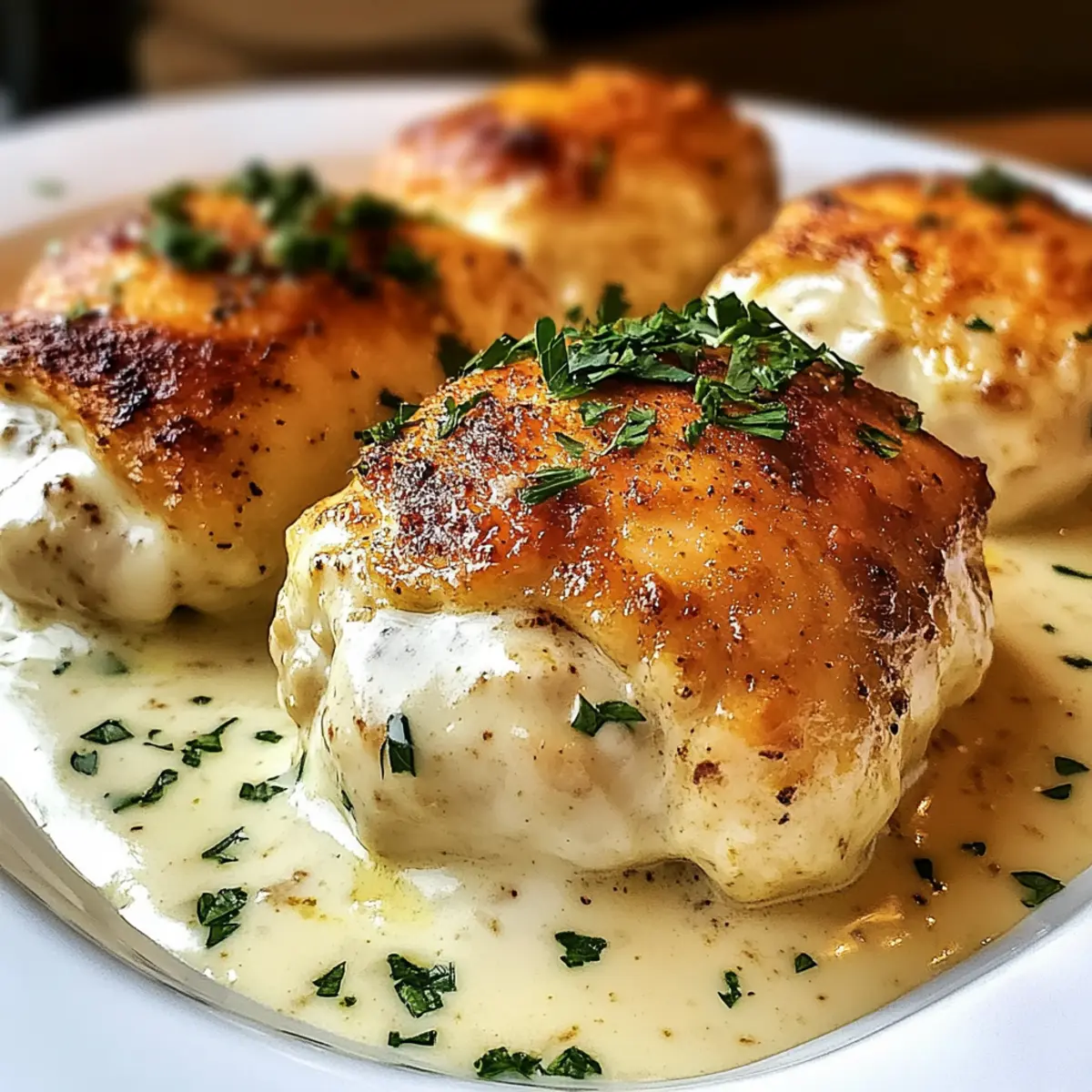Hühnchenkissen mit cremiger Parmesansoße genießen