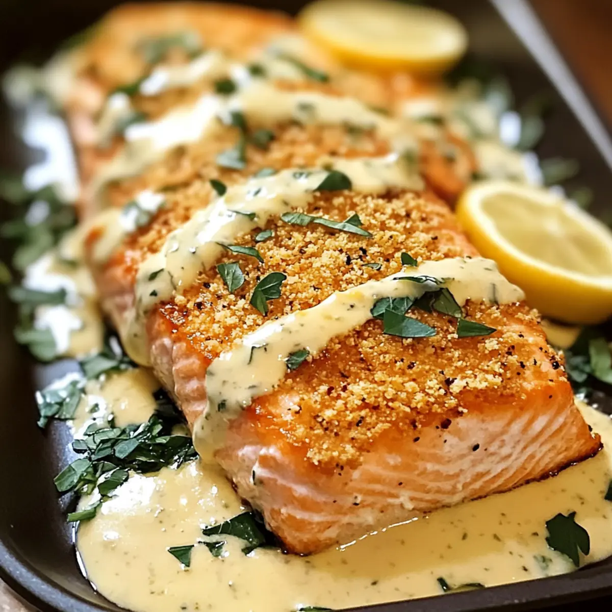 Parmesan-Krustenlachs mit Zitronen-Cremesauce