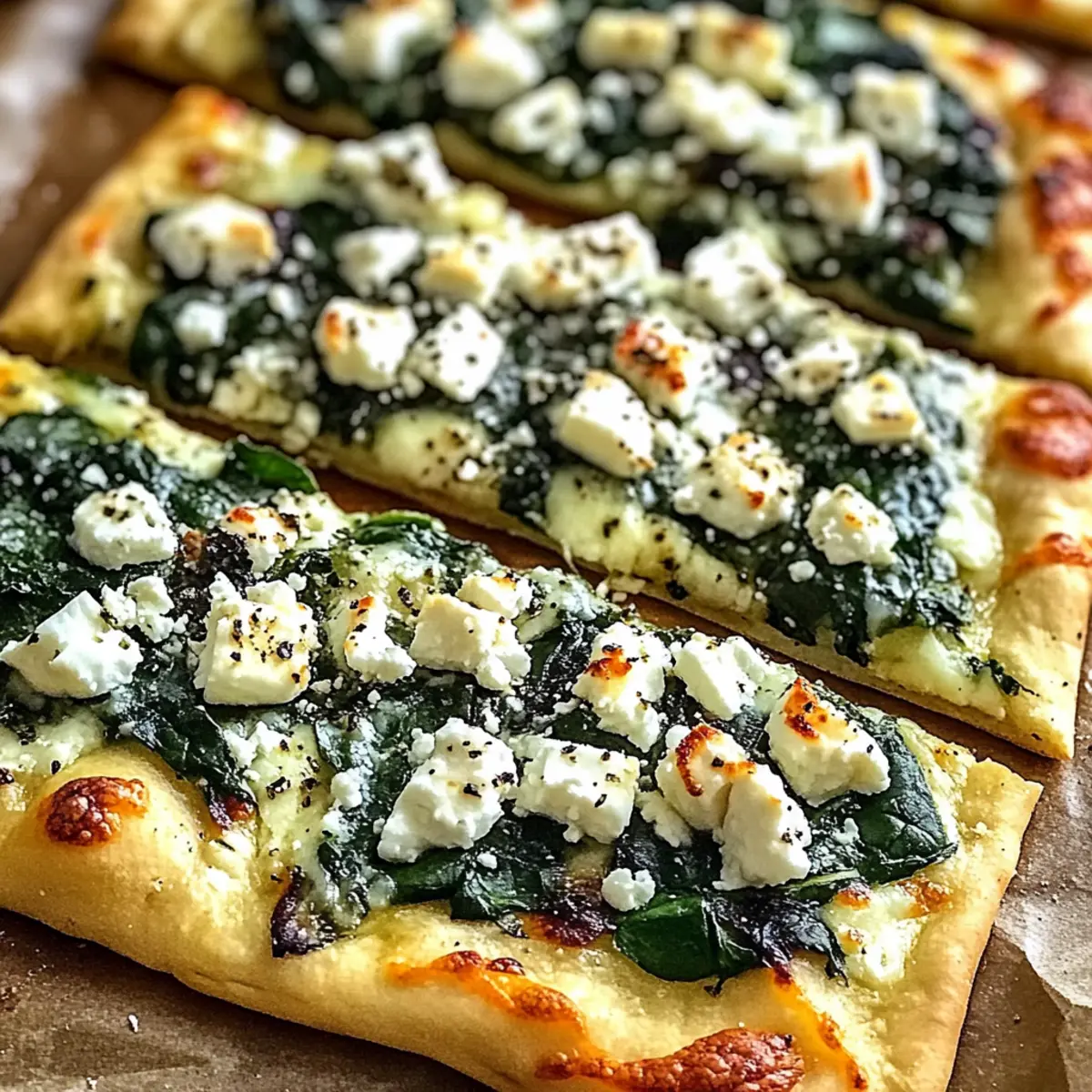 Spinat und Feta Fladenbrot Pizza für Eilige