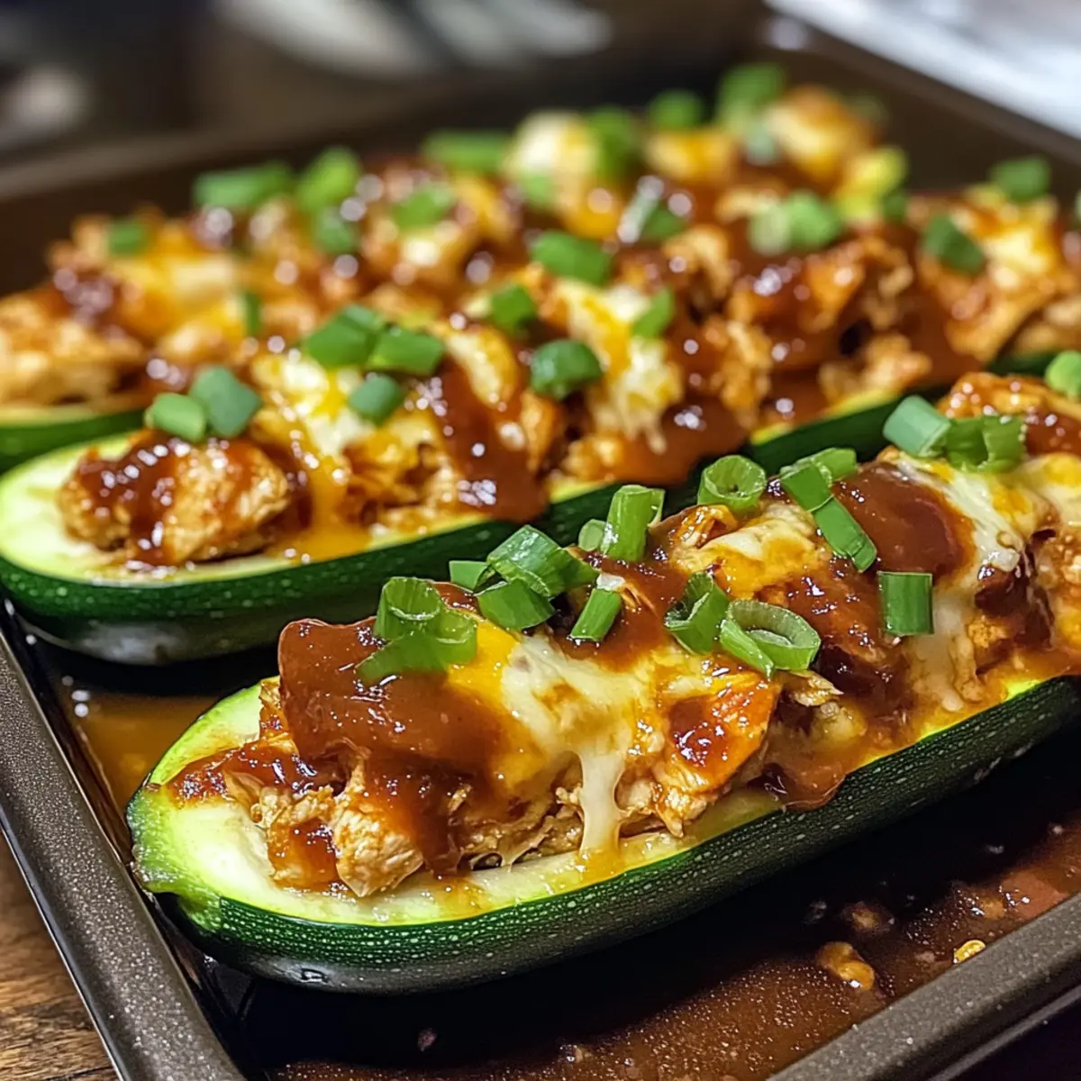 Klebrige BBQ-Hähnchen-Zucchini-Boote für den Sommer