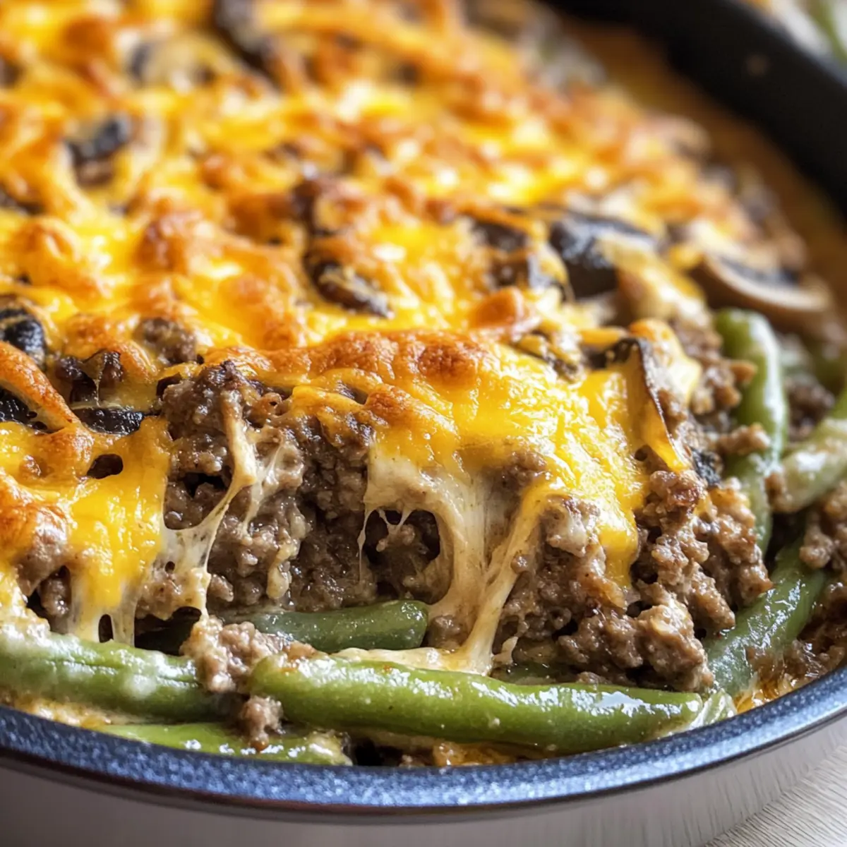 Leckere Hamburgergrüne-Bohnen-Auflauf mit Champignons