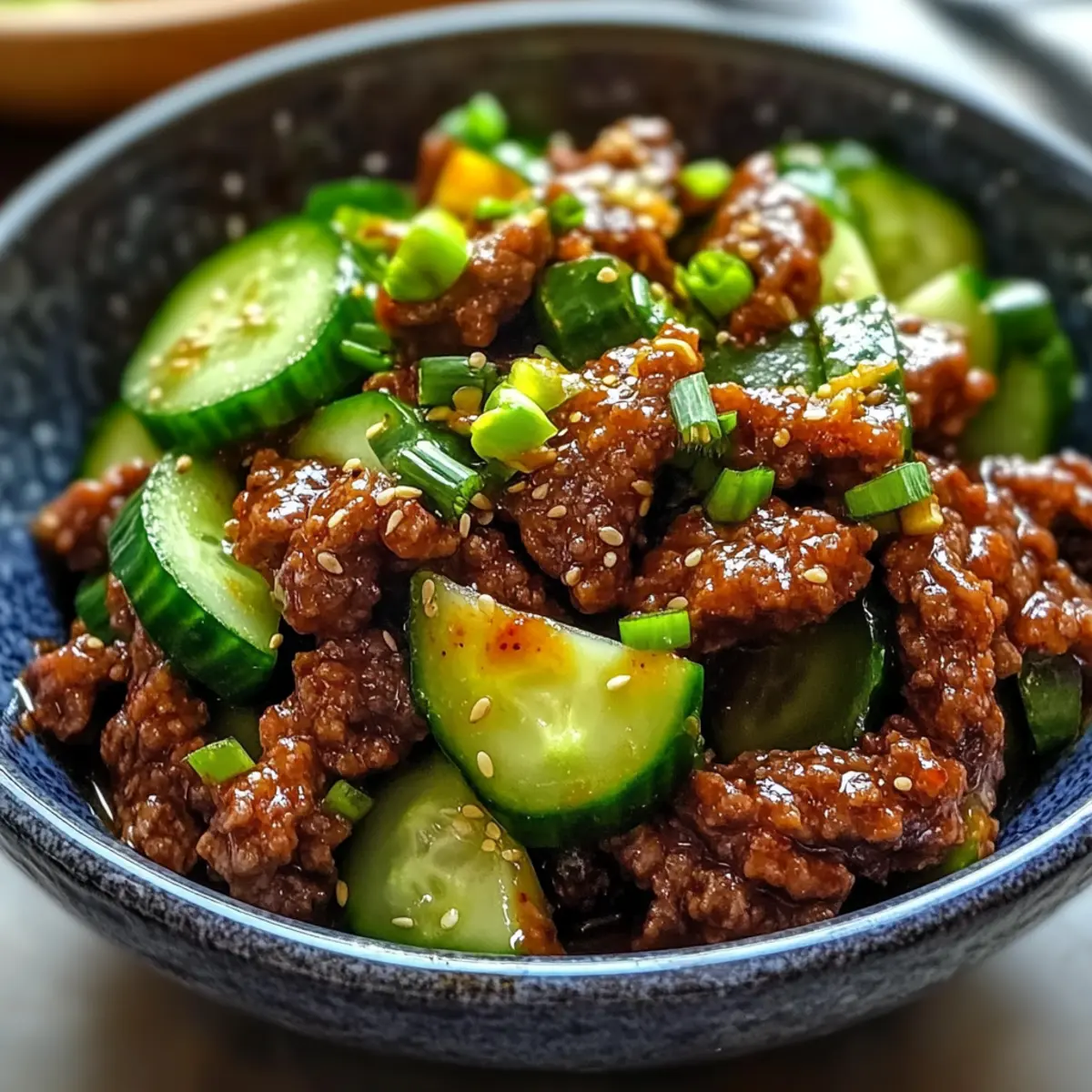 Scharfes Keto Koreanisches Rindfleisch mit Gurkensalat