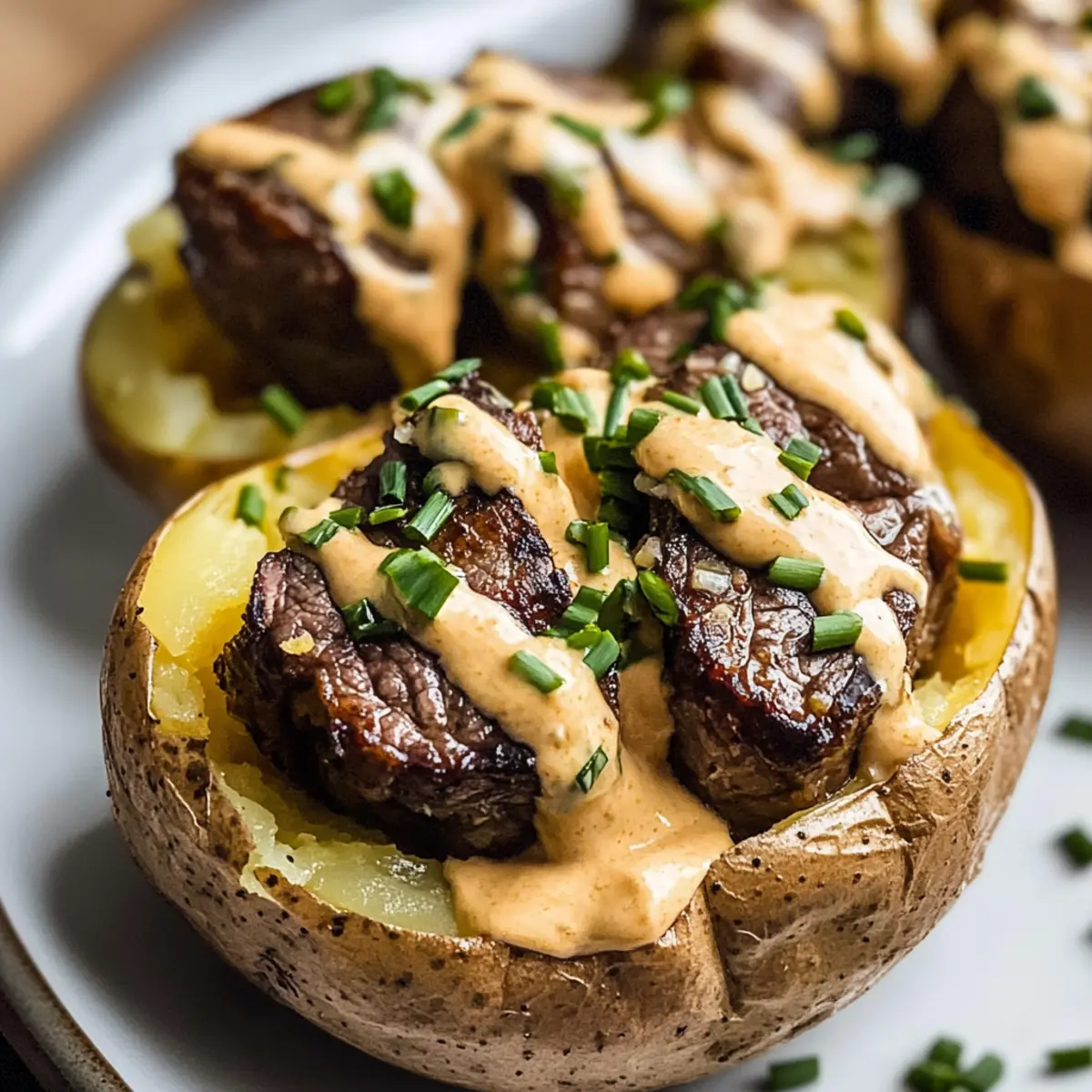 Steak Ofenkartoffel mit würziger Käsesauce