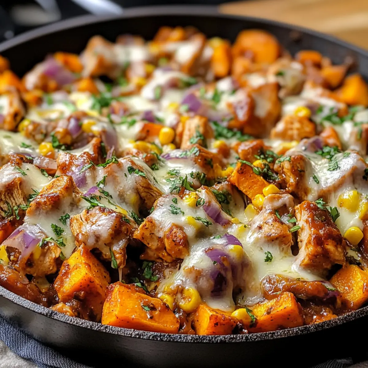 BBQ Hähnchen Süßkartoffel Pfanne – Einfaches Rezept