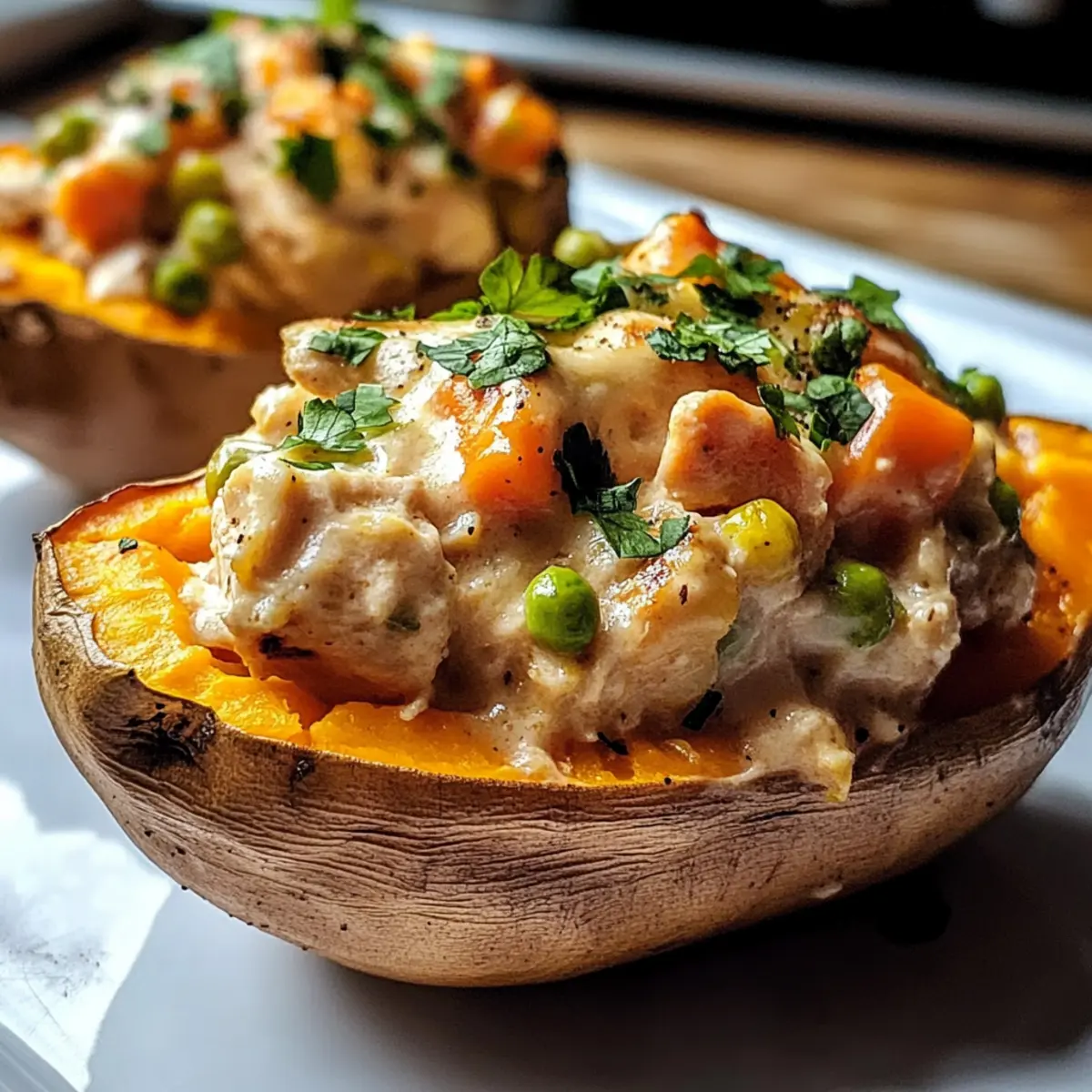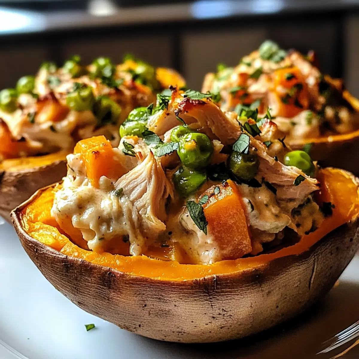 Hühnchen-Pot-Pie gefüllte Süßkartoffeln für jeden Tag