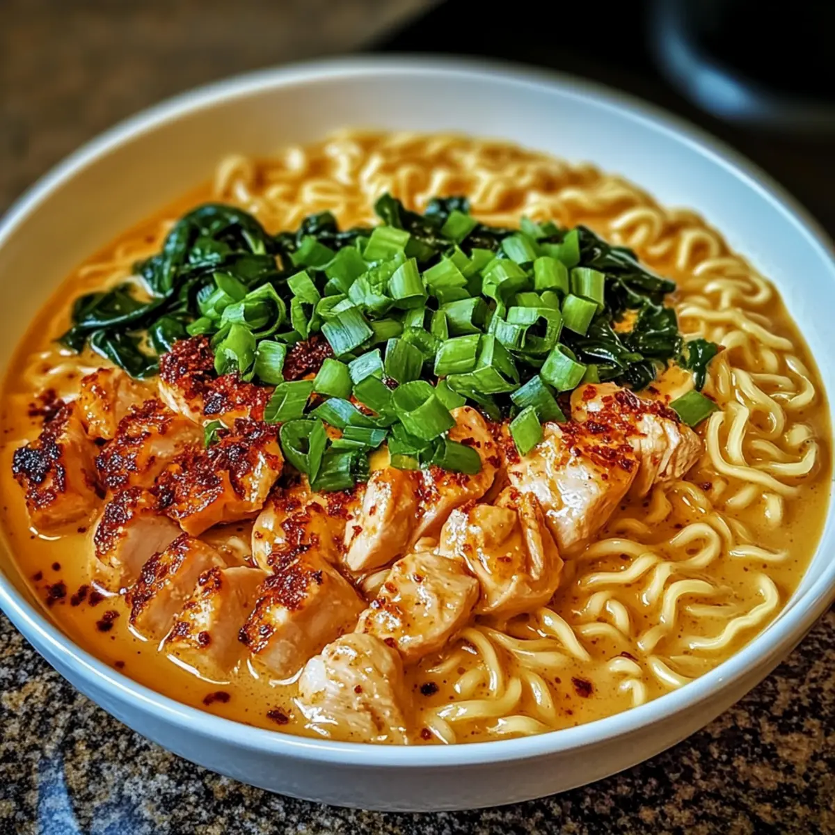 Hähnchen Ramen mit cremiger Knoblauchsauce genießen