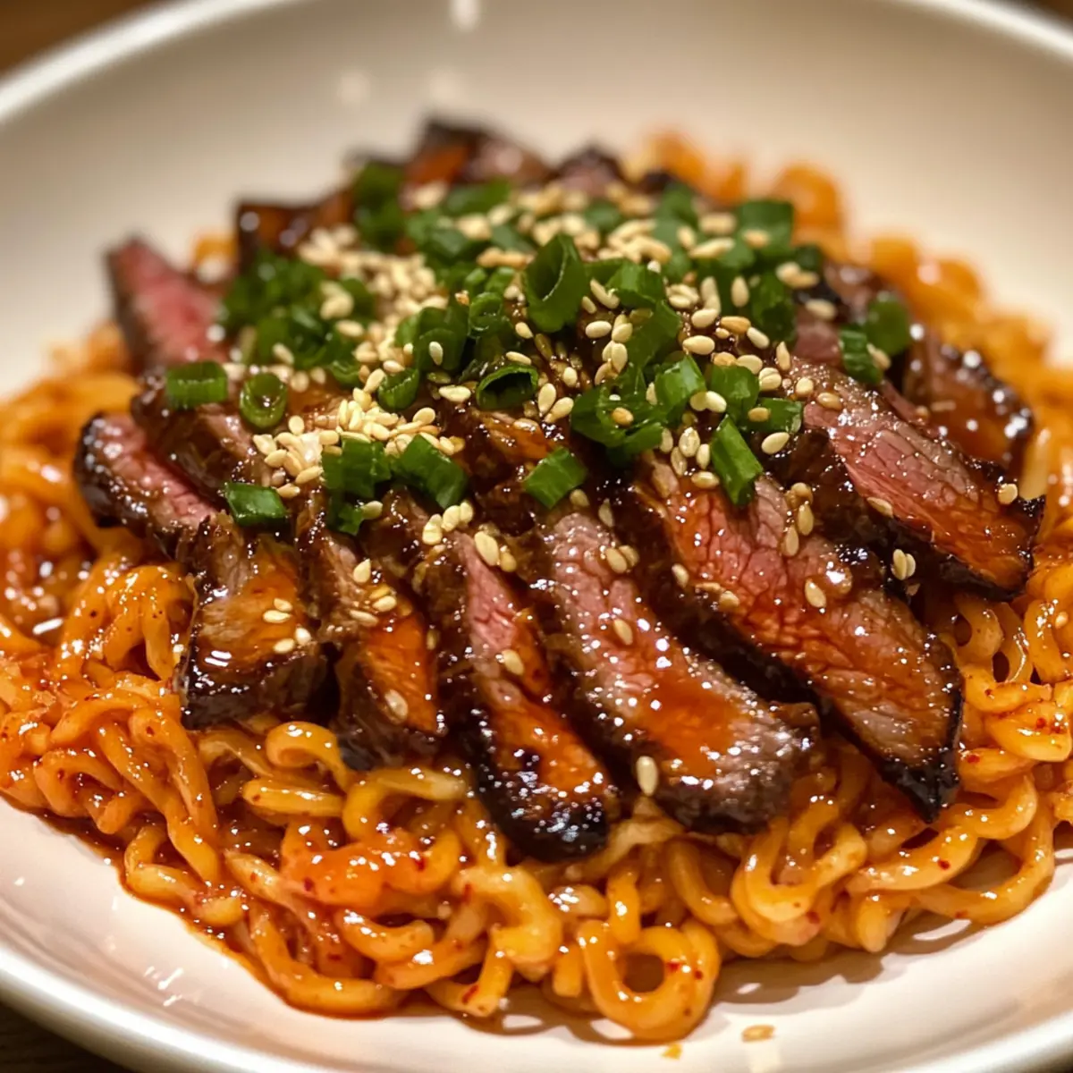 Scharfe koreanische Ramen mit gegrilltem Rindfleisch in 30 Minuten