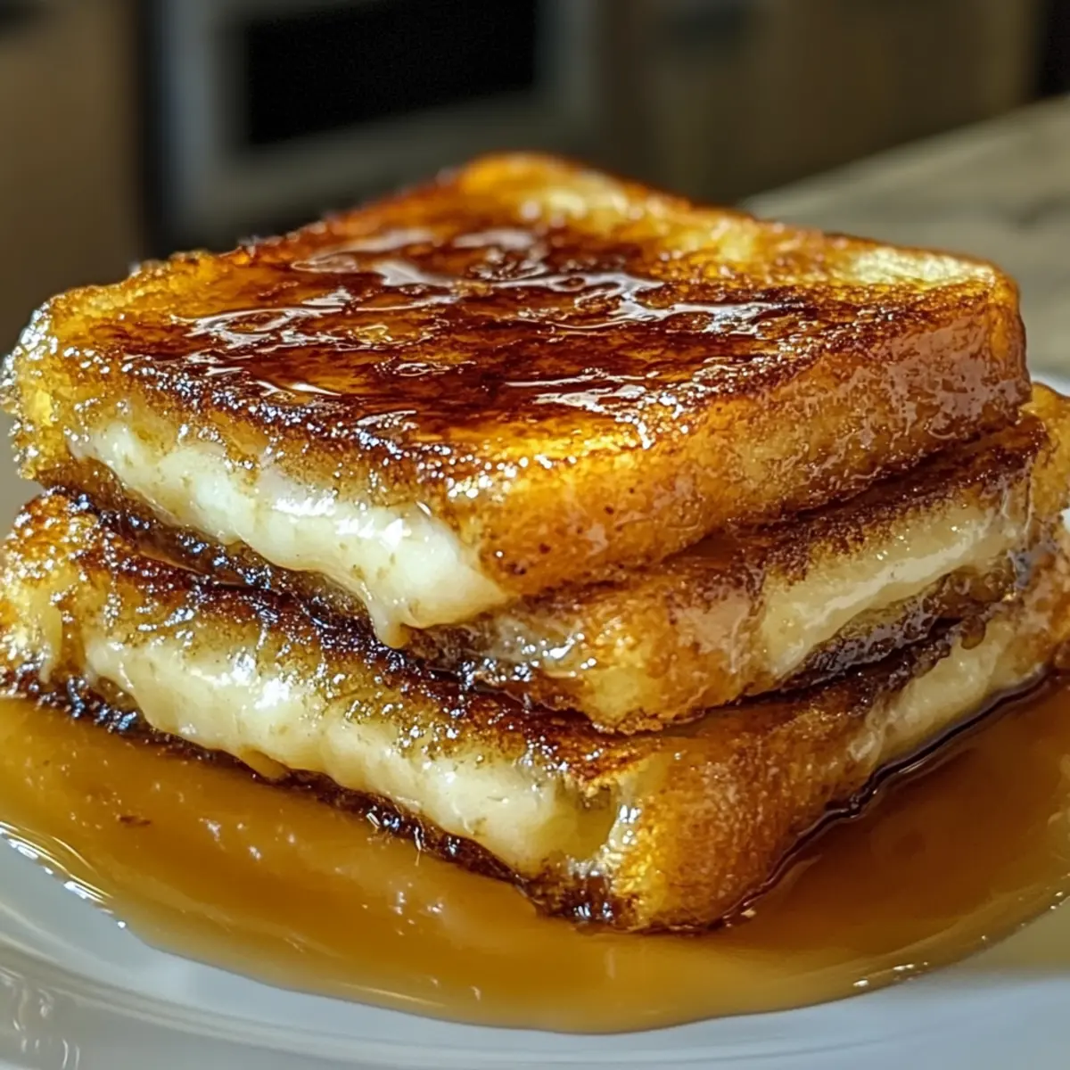 Flavor-Variationen: Experimentieren Sie mit Geschmacksrichtungen wie Orange- oder Zitronenzesten in der Füllung, um dem Crème Brûlée Französischer Toast eine frische Note zu verleihen.