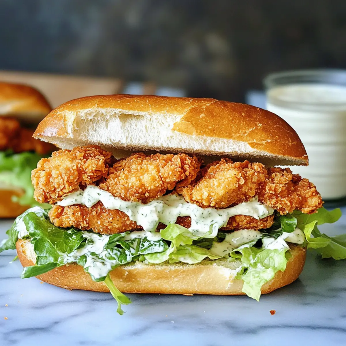 Die Zubereitung des Crispy Chicken Caesar Sandwiches wird zum Kinderspiel, wenn du einige Schritte im Voraus erledigst! Du kannst das Caesar-Dressing bis zu 3 Tage im Voraus zubereiten und im Kühlschrank aufbewahren, was dir wertvolle Zeit spart. Auch die Hühnchenfilets lassen sich panieren und bis zu 24 Stunden vorher vorbereiten; lege sie einfach in den Kühlschrank, um die Knusprigkeit beim Frittieren zu bewahren. Wenn du bereit bist, das Sandwich zu genießen, erhitze einfach etwas Öl und frittierte die Hühnchenfilets, bis sie goldbraun sind. Achte darauf, die Sandwiches erst kurz vor dem Servieren zusammenzustellen, um die Frische des Römersalats und das Knistern des Baguettes zu erhalten – so bleibt dein Crispy Chicken Caesar Sandwich auch beim Vorbereiten köstlich!
