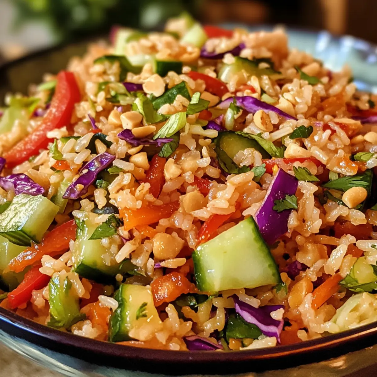 Crispy Reis Salat mit Erdnuss-Sesam-Dressing Genuss