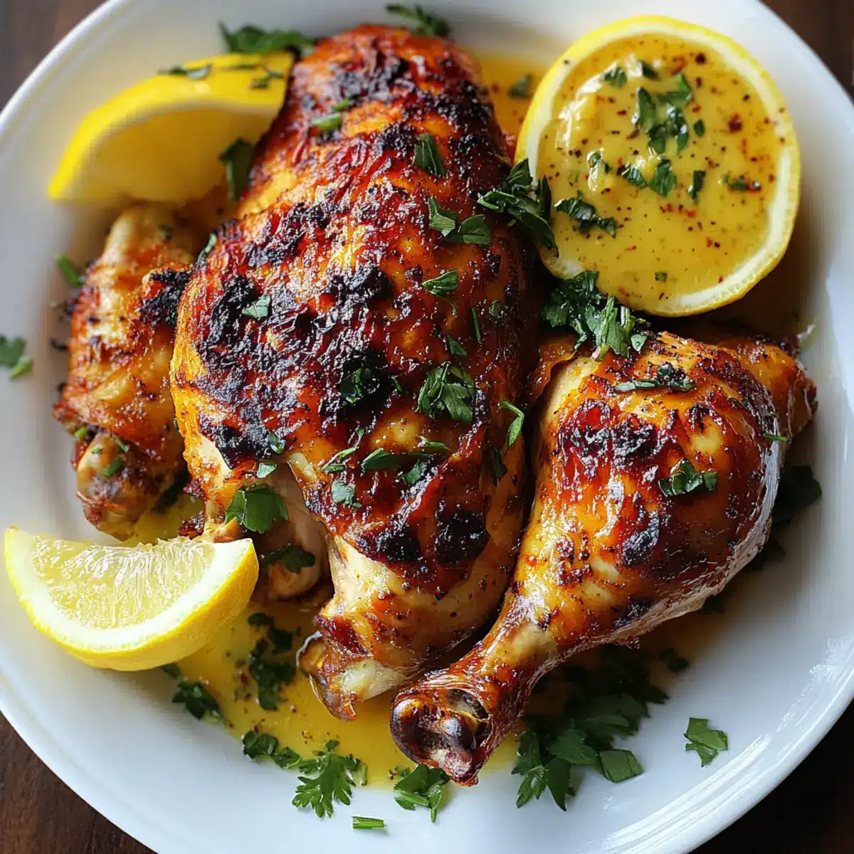 - Zitronensaft (von 1 Zitrone) – Fügt Säure hinzu, die die Aromen ausgleicht und das Hähnchen zart macht.