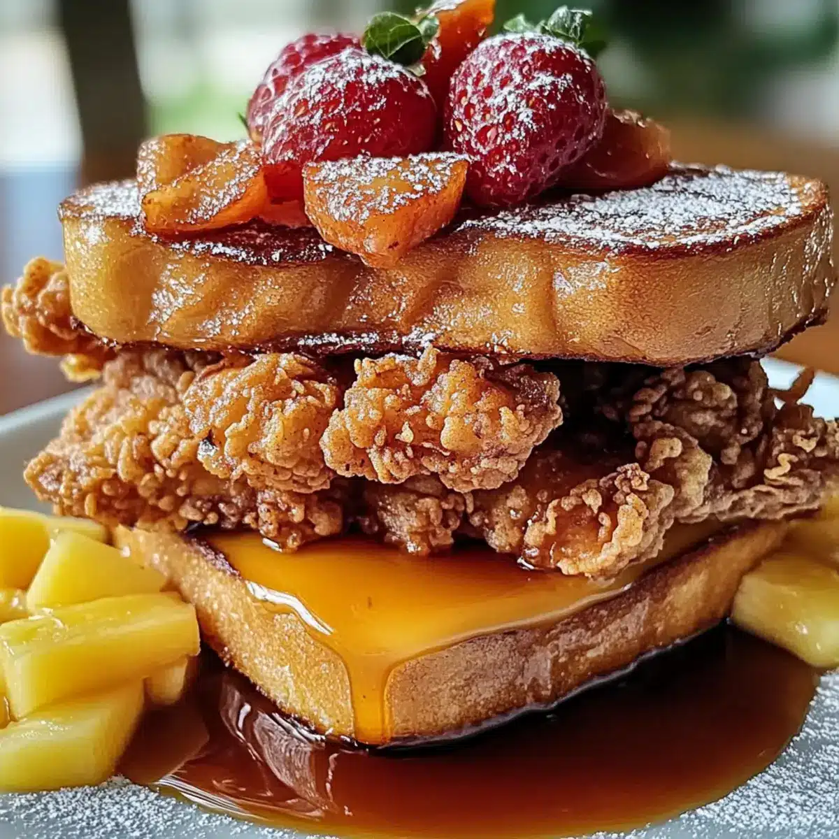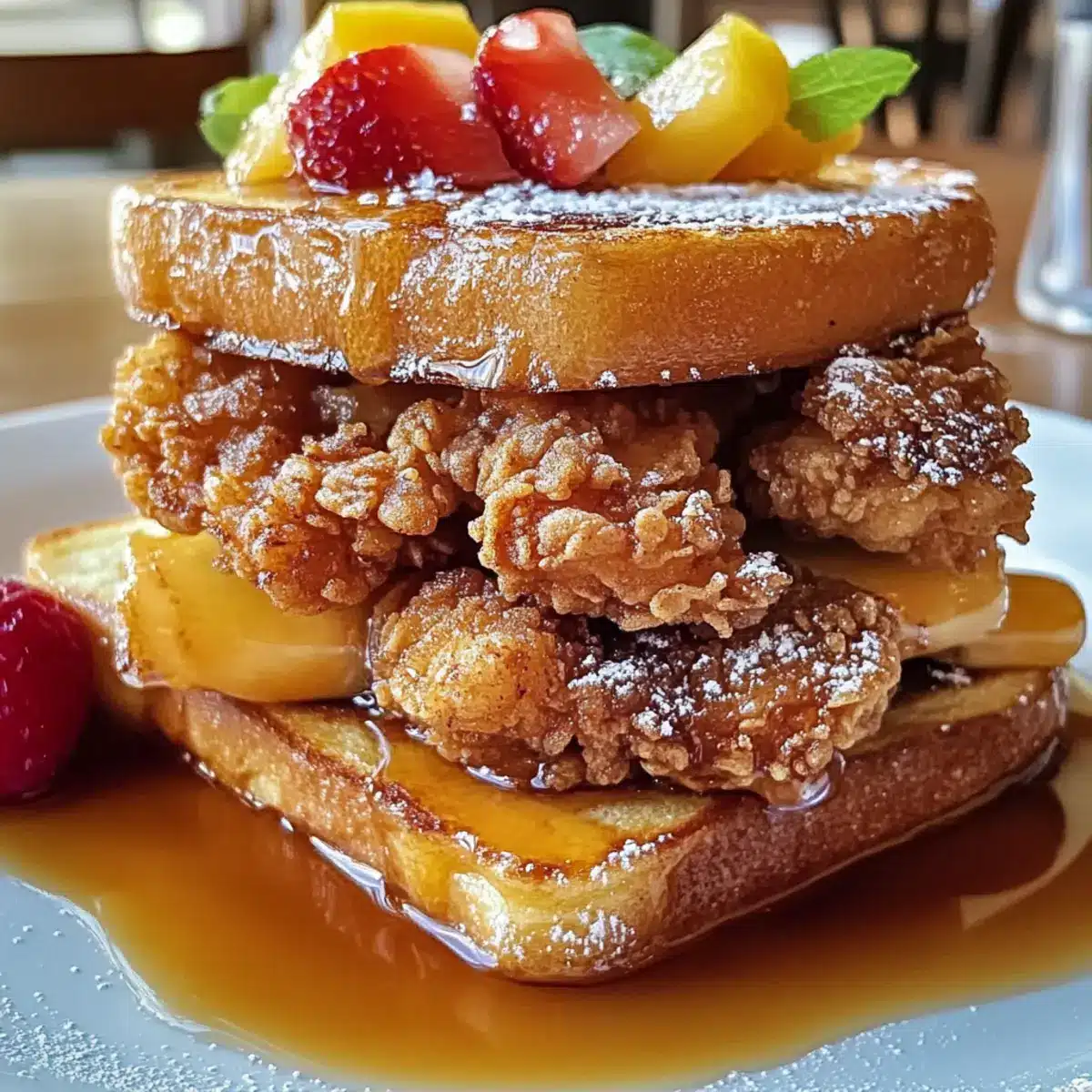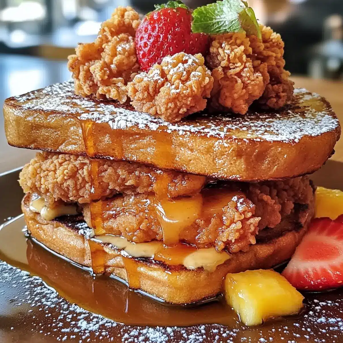 Süß und herzhaft: Die Kombination aus knusprigem Hähnchen und süßem French Toast sorgt für eine Geschmacksexplosion, die einfach süchtig macht!