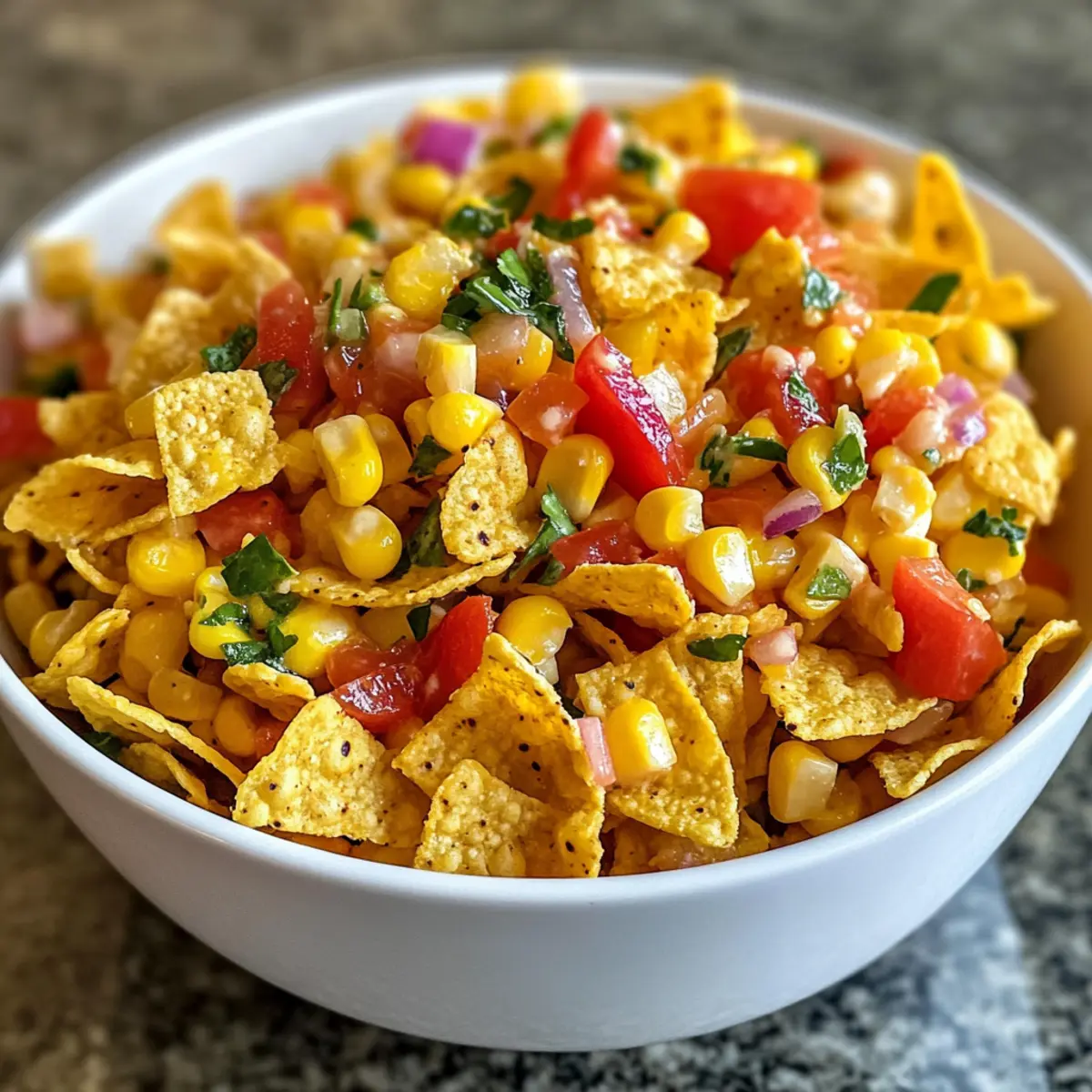 Knuspriger Genuss: Die Kombination aus frittierte Fritos und süßem Mais sorgt für einen unwiderstehlichen Crunch, der immer wieder begeistert.