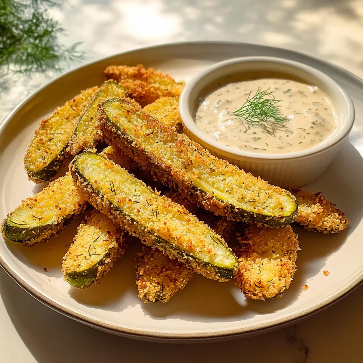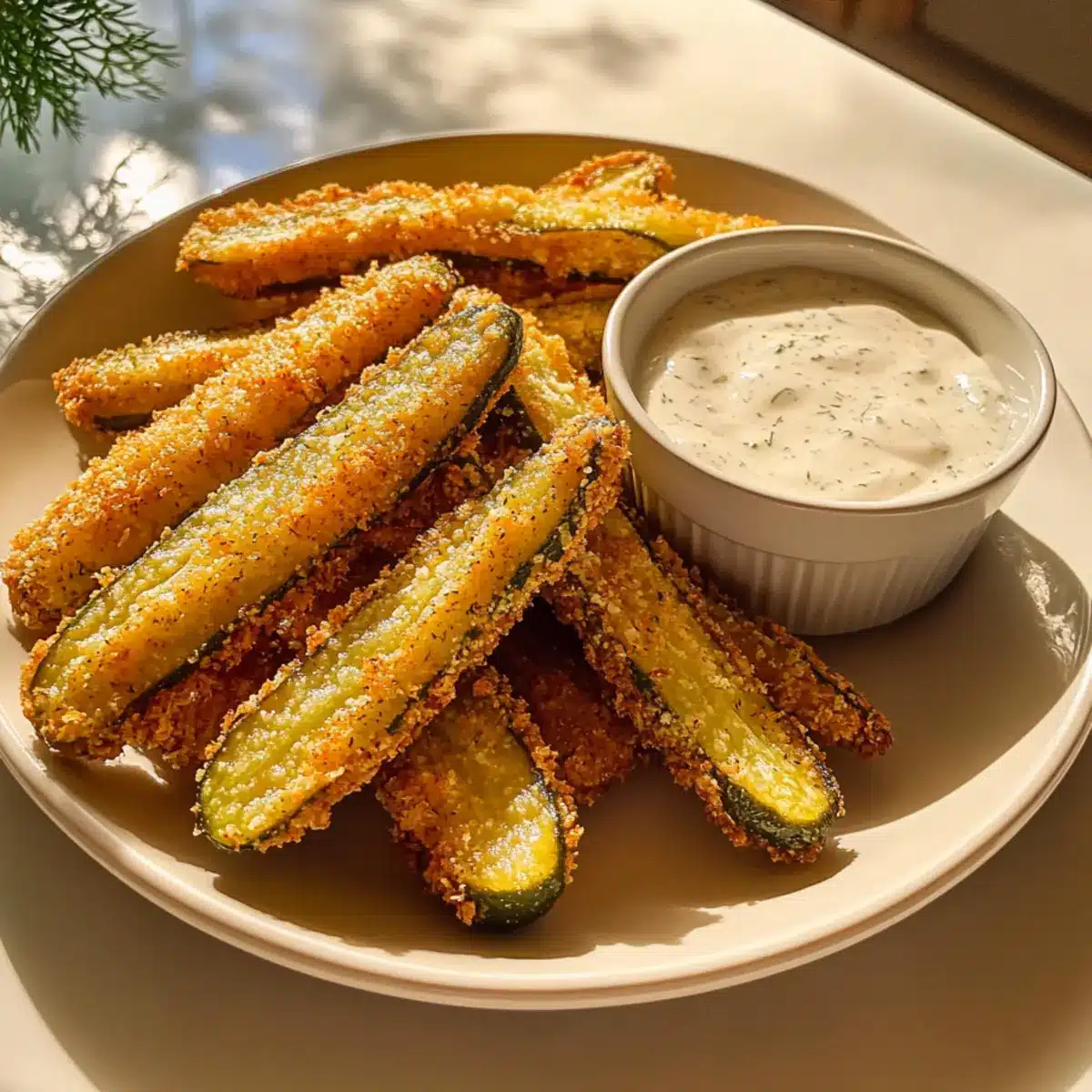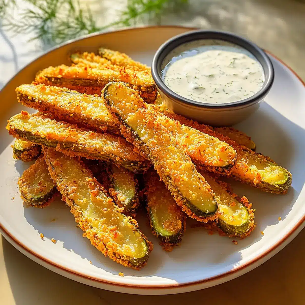 Frittierte Dillgurkenstäbchen mit scharfer Ranch-Dressing