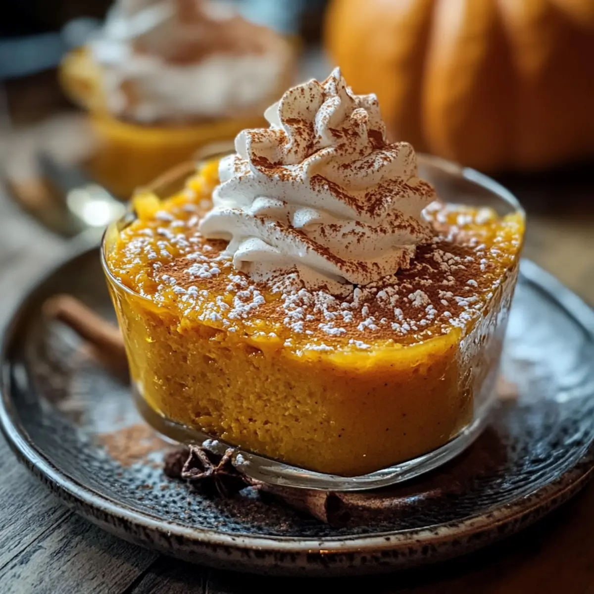Wenn gewünscht, toppe deinen gebackenen Kürbispudding mit Schlagsahne, einer Prise Puderzucker oder einem Spritzer Karamell. Solche zusätzlichen Verfeinerungen bieten eine schöne Ergänzung zu den warmen Aromen und machen dein Dessert noch einladender. Genieß die herbstliche Wärme bei jedem Bissen!