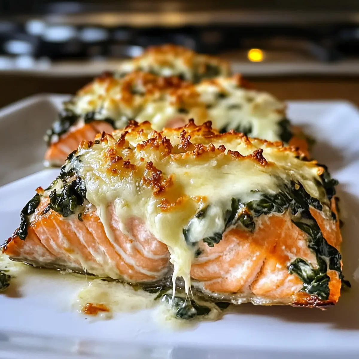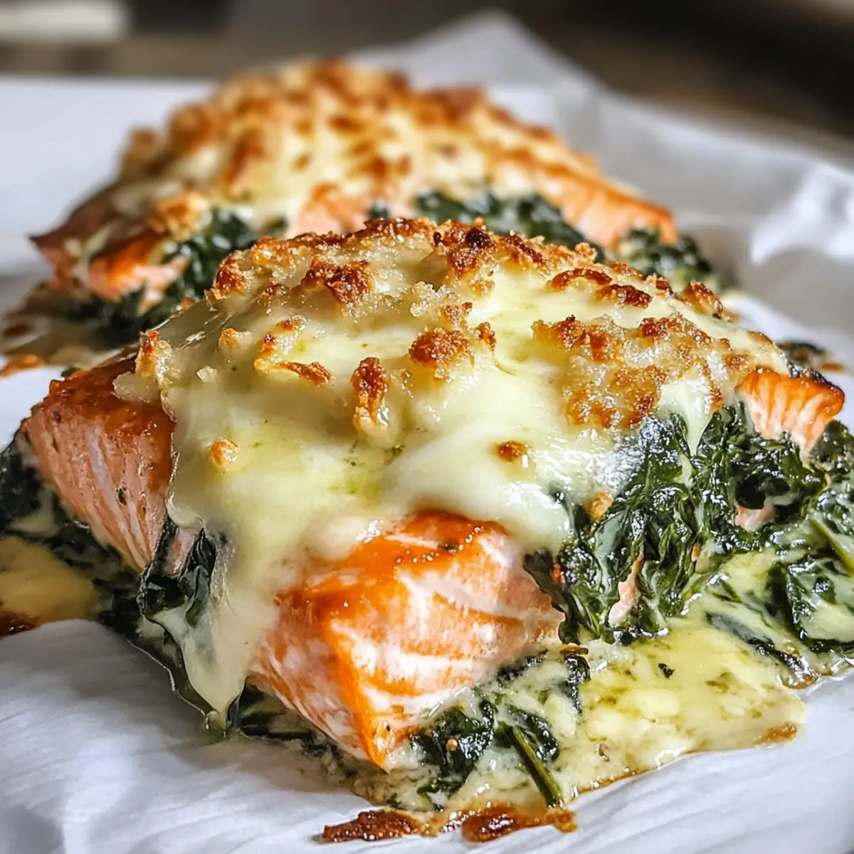 - Lass den Gebratenen Lachs mit Spinat und Mozzarella-Genuss einige Minuten ruhen, bevor du ihn servierst.