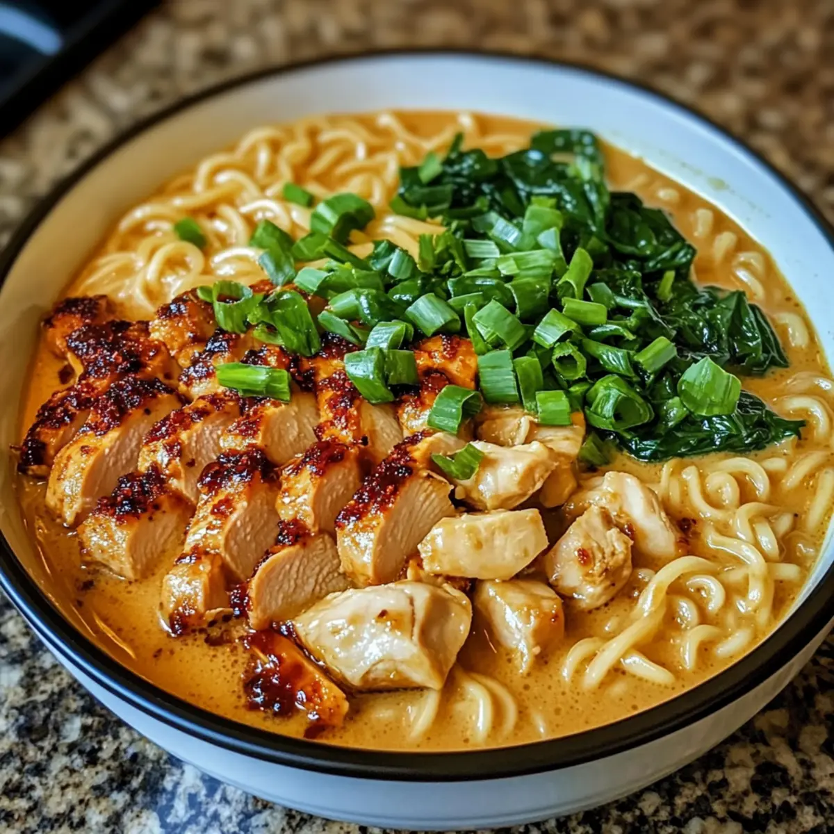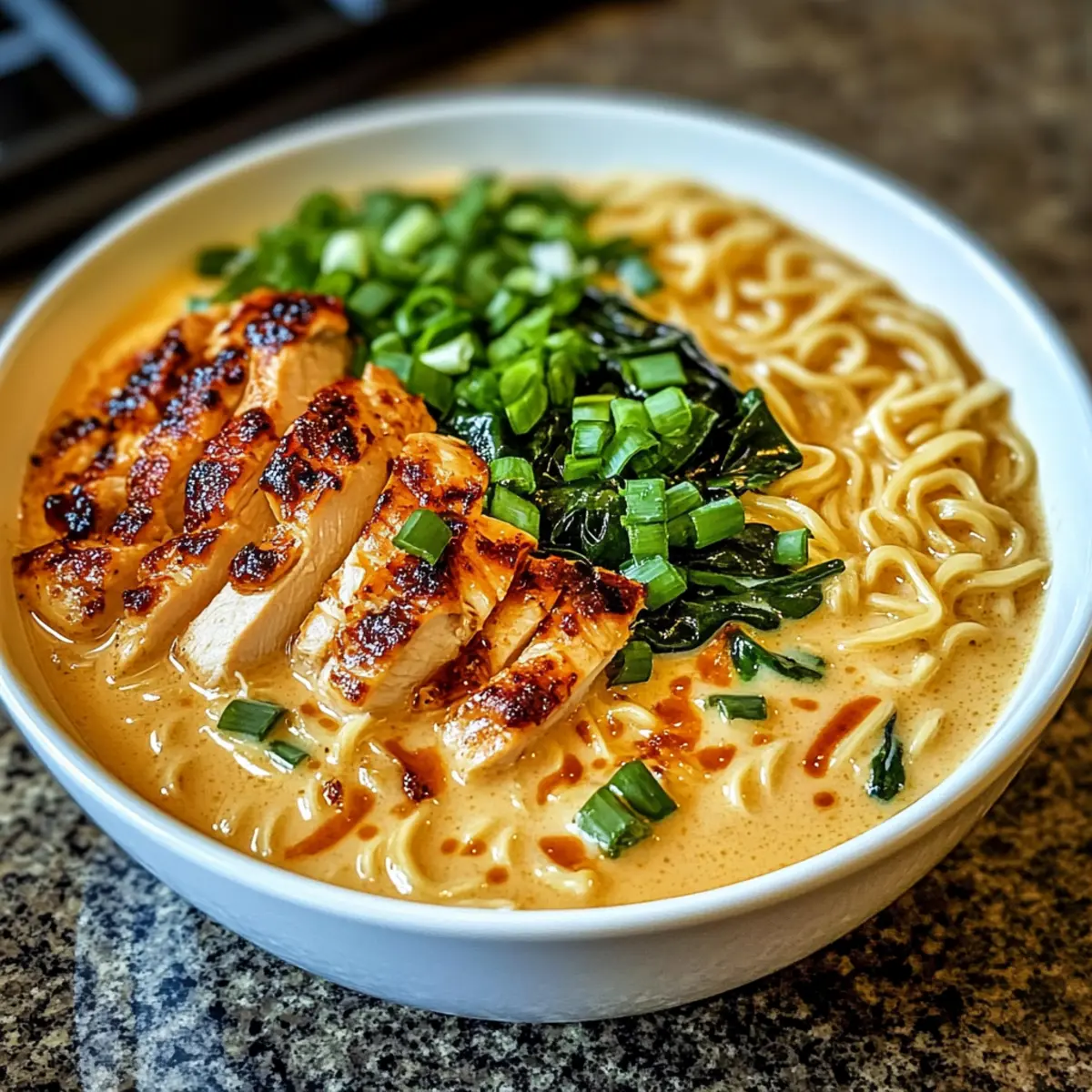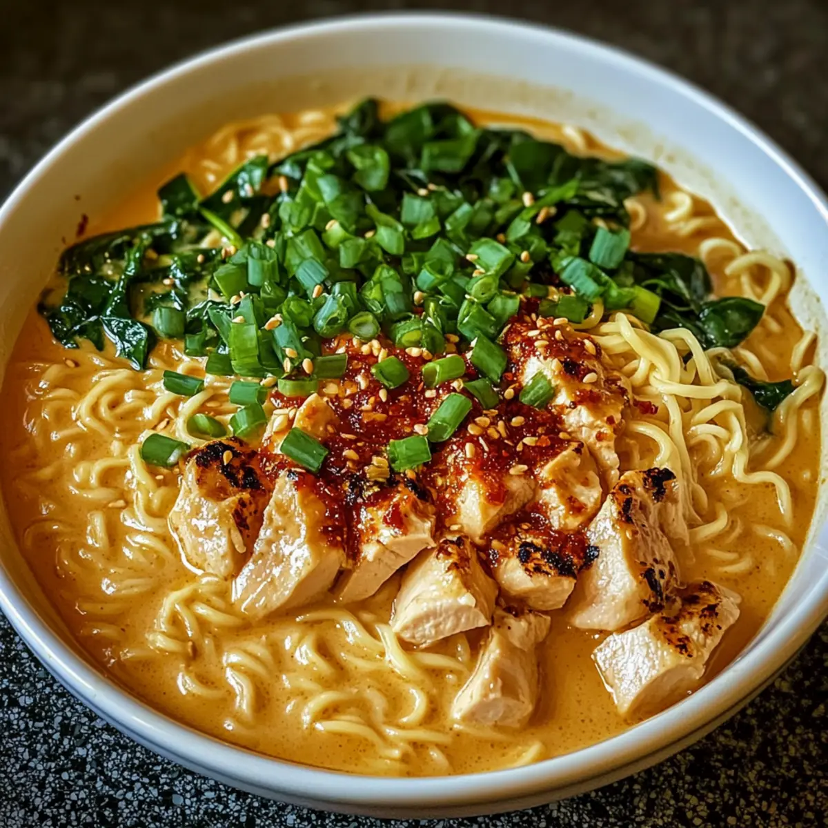 Hähnchen Ramen mit cremiger Knoblauchsauce genießen