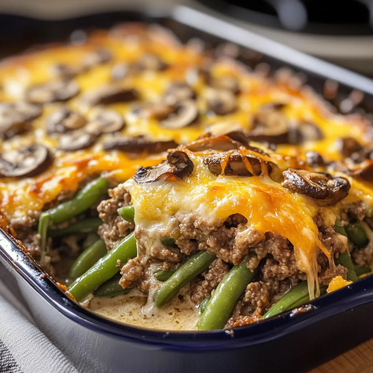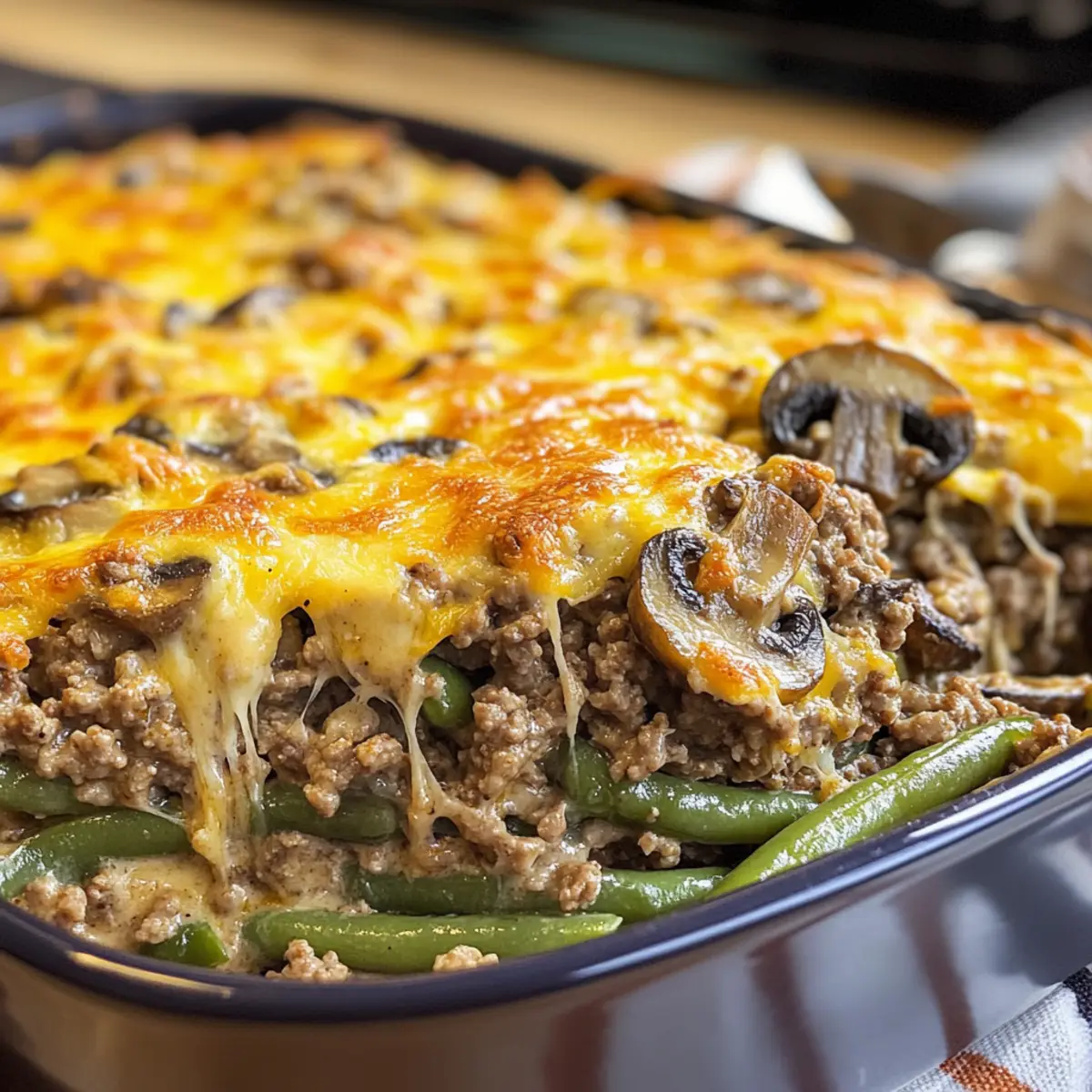 Variationsmöglichkeiten: Trau dich, das Rezept anzupassen, wie beispielsweise das Hinzufügen anderer Gemüse oder das Tauschen von Käse; das sorgt für neue Geschmackserlebnisse im Hamburger grünen Bohnenauflauf mit Pilzen.