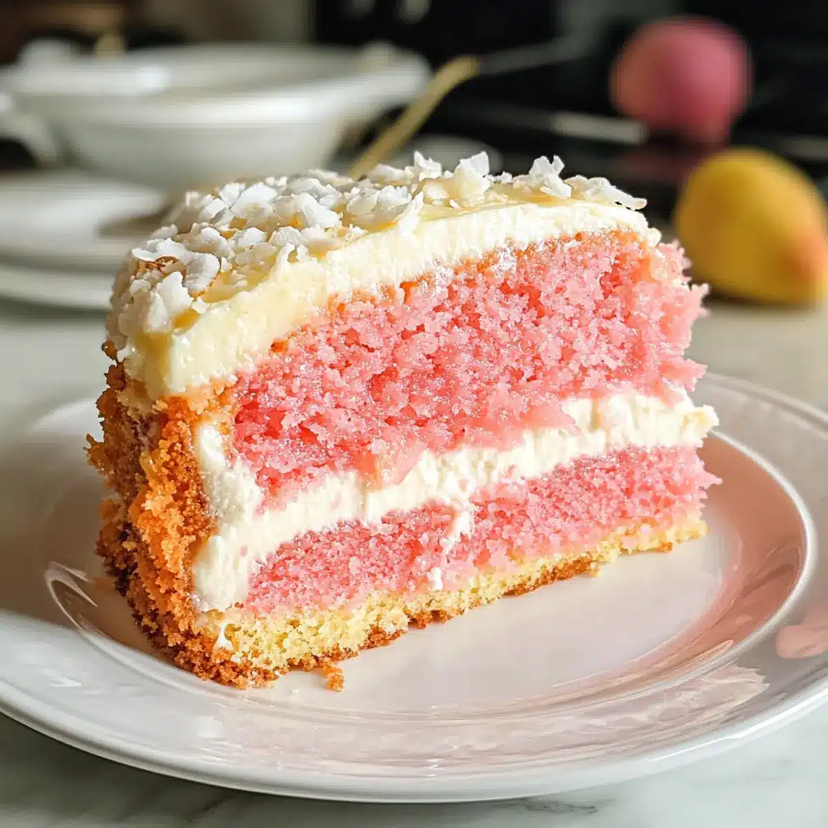 Garnierung: Füge die gesüßten Kokosraspel erst kurz vor dem Servieren hinzu, um ihre Knusprigkeit zu erhalten und den visuellen Reiz deines Hawaiian Guava Kuchens zu maximieren.