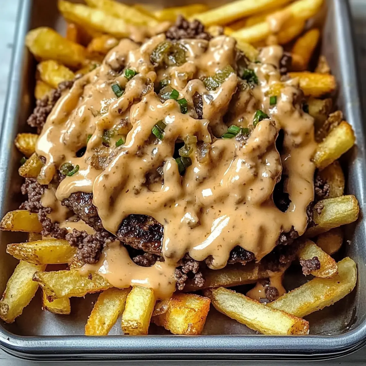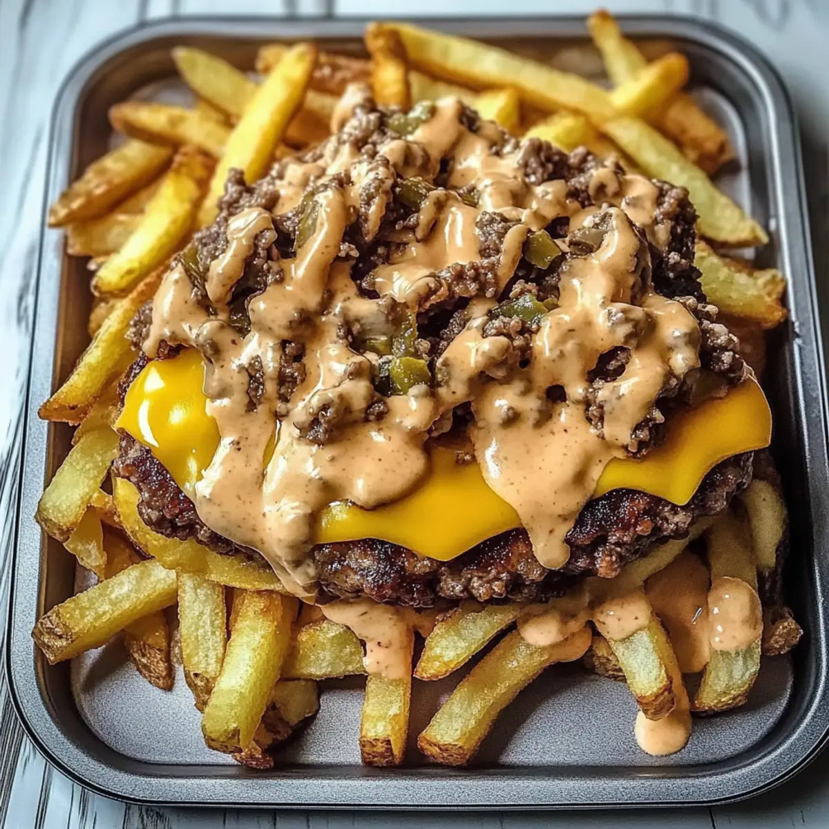 Wer hätte gedacht, dass aus einfachen Pommes eine echte Geschmacksexplosion entstehen kann? Meine Herzhafte Smash Burger Pommes sind nicht nur ein schnelles Abendessen, das in Minuten zubereitet ist, sondern auch eine genussvolle Art, die Aromen eines klassischen Smash Burgers in ein neues, aufregendes Format zu verwandeln. Diese lässige Mahlzeit ist perfekt für stressige Wochentage und lässt sich nach Herzenslust mit allerlei Toppings anpassen, sodass jeder am Tisch auf seine Kosten kommt. Die Kombination aus knusprigen Pommes, saftigem Rindfleisch und einer cremigen Käsesauce sorgt für ein unvergessliches Geschmackserlebnis. So wird sogar das Abendessen zum Highlight des Tages! Bist du bereit, deine neue Lieblingsgericht zu entdecken?