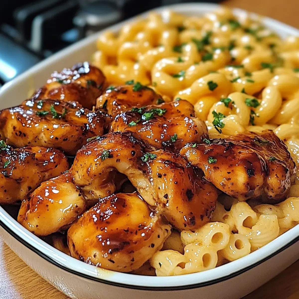 Schritt-für-Schritt-Anleitung für Honig Knoblauch Butter Hähnchen mit Makkaroni und Käse