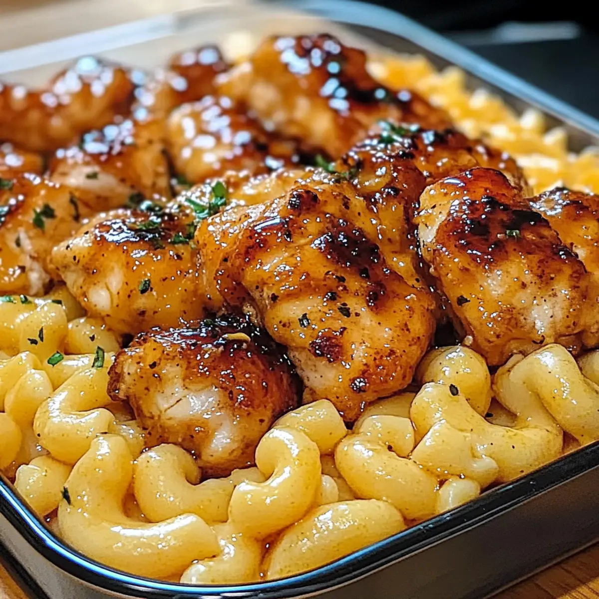 Honig Knoblauch Butter Hähnchen mit Makkaroni