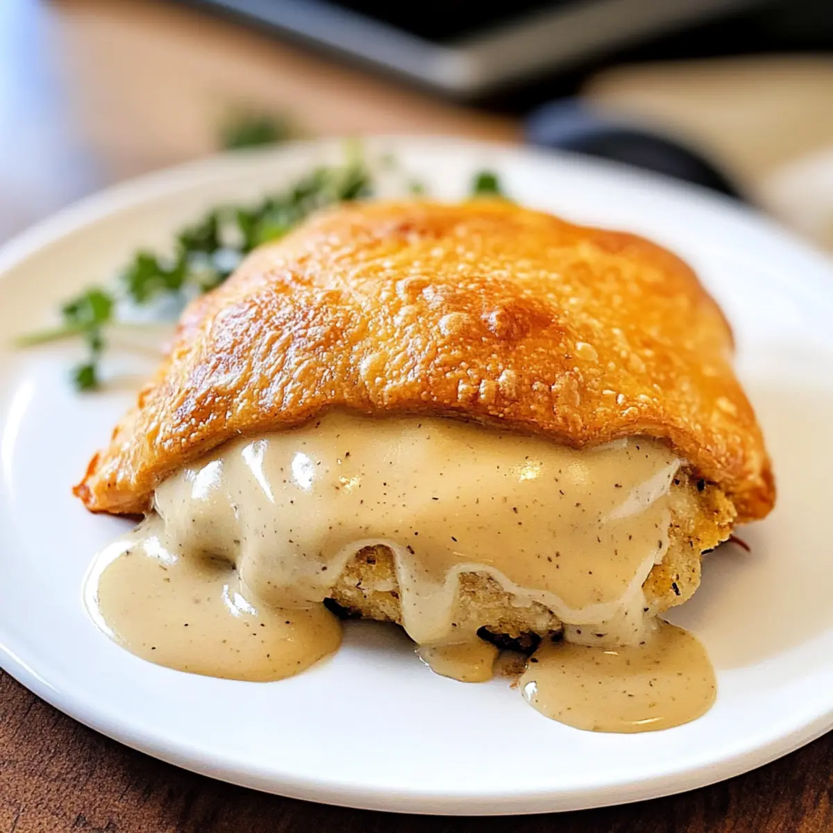 Gravy im Voraus herstellen: Bereiten Sie die Sauce bereits im Voraus zu, um Zeit zu sparen; servieren Sie sie warm für einen köstlichen Abschluss zu den Hühnchen Kissen.