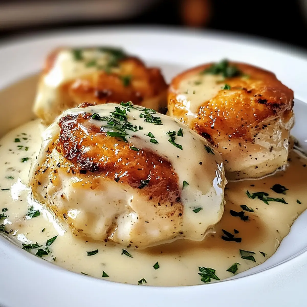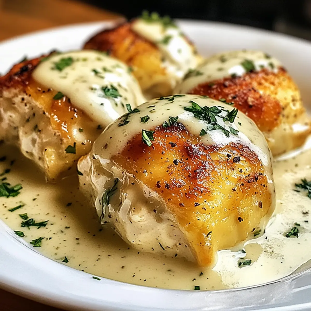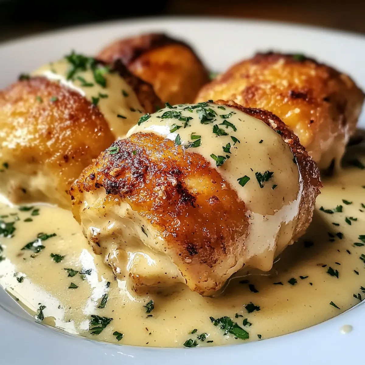 Hühnchenkissen mit cremiger Parmesansoße genießen
