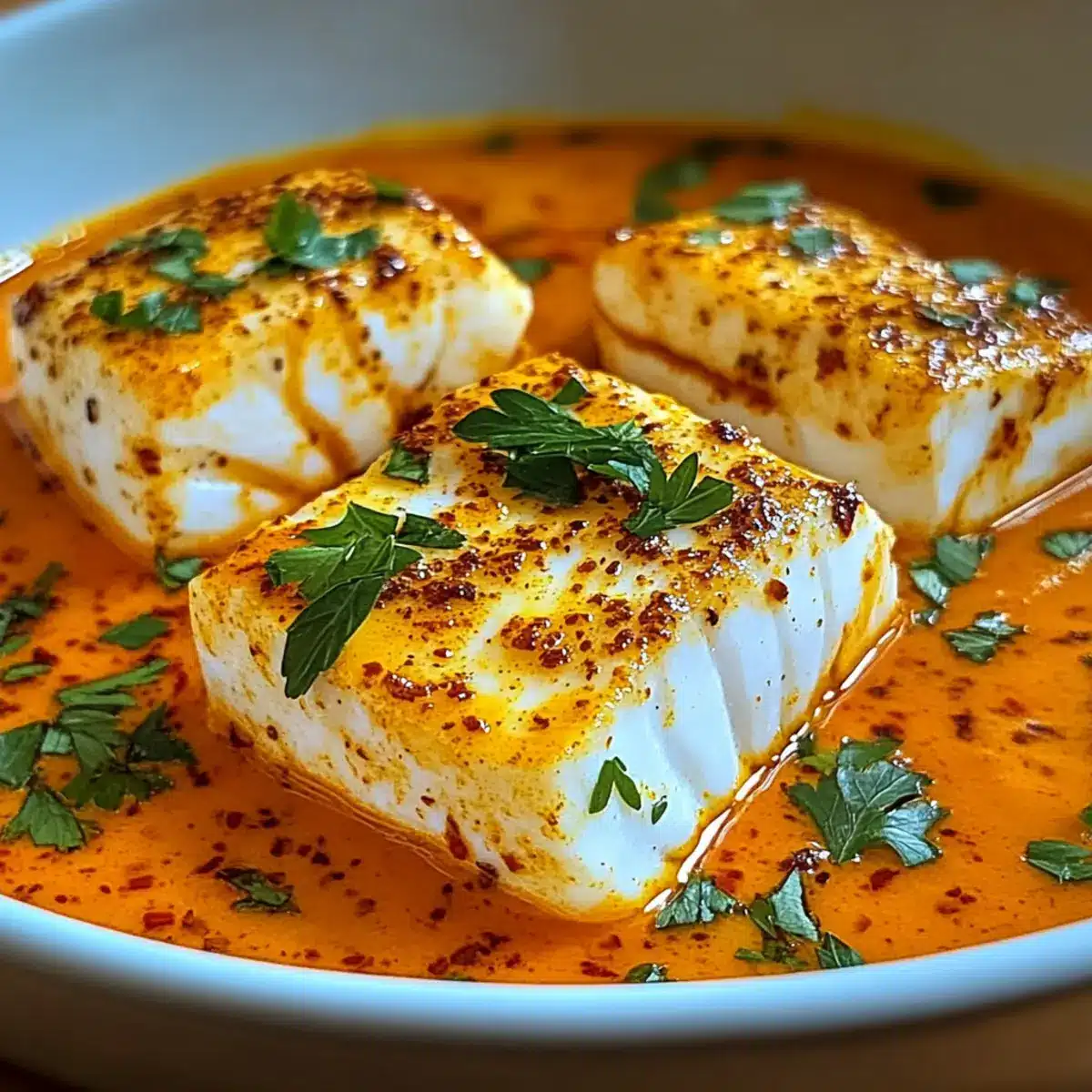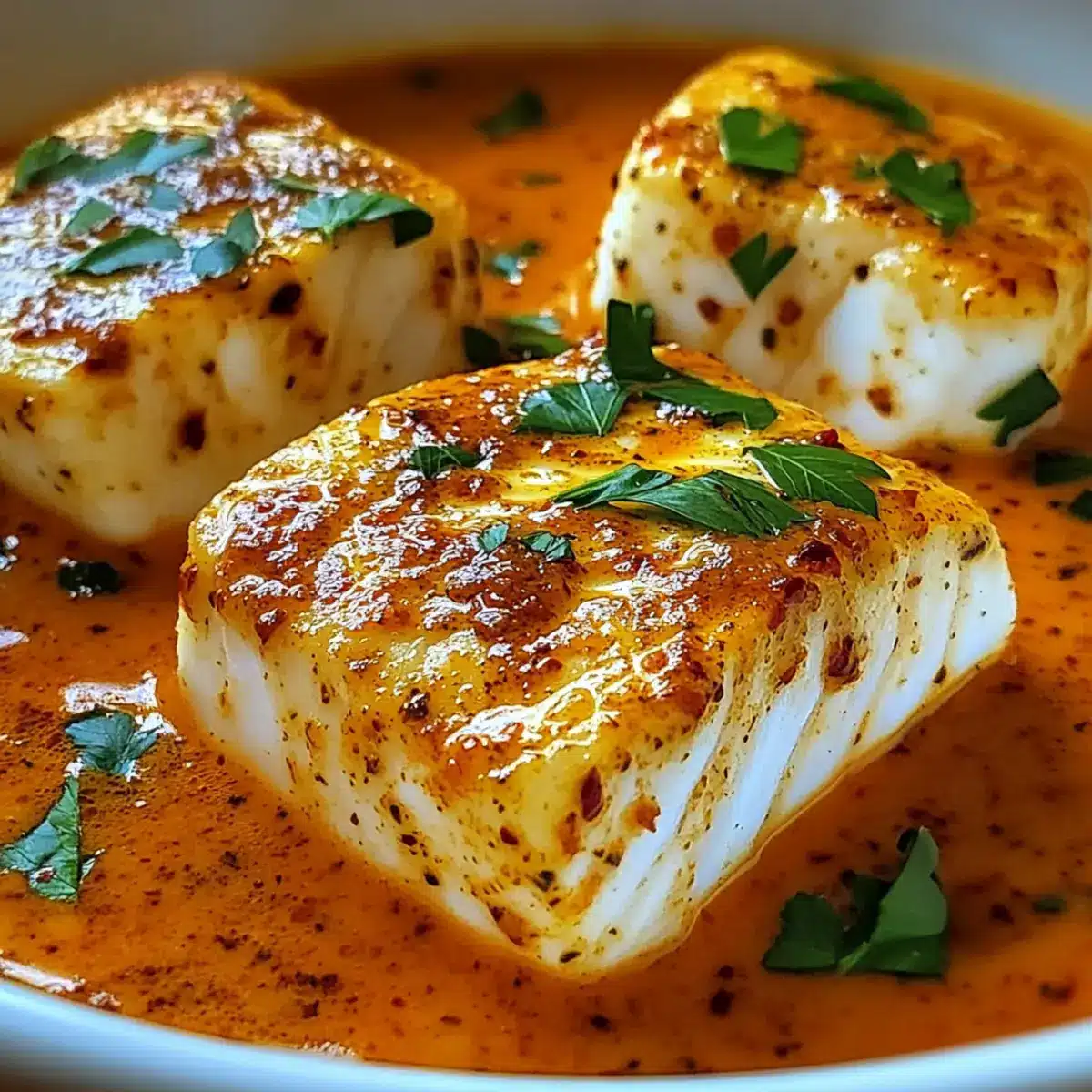 Fisch-Alternativen: Tauschen Sie den Kabeljau gegen Tilapia oder Haddock für einen anderen Geschmack und eine andere Textur. Beide Fischsorten sind mild und passen hervorragend zur Sauce.