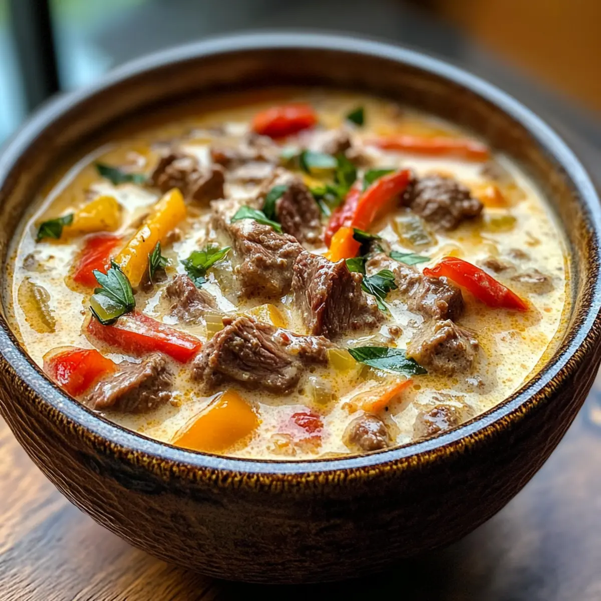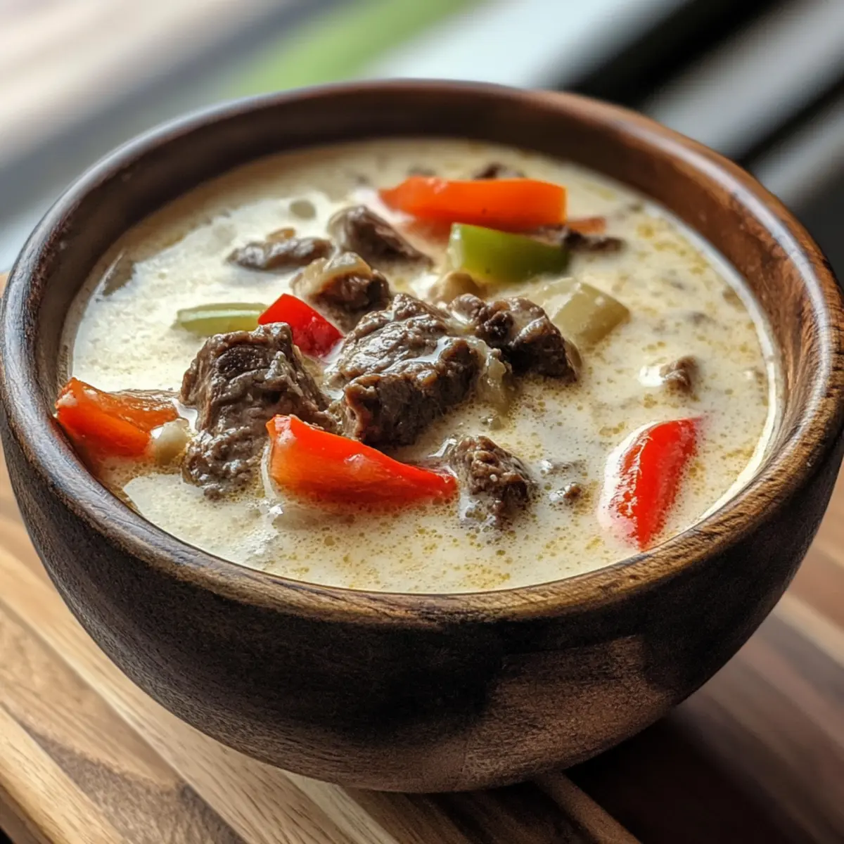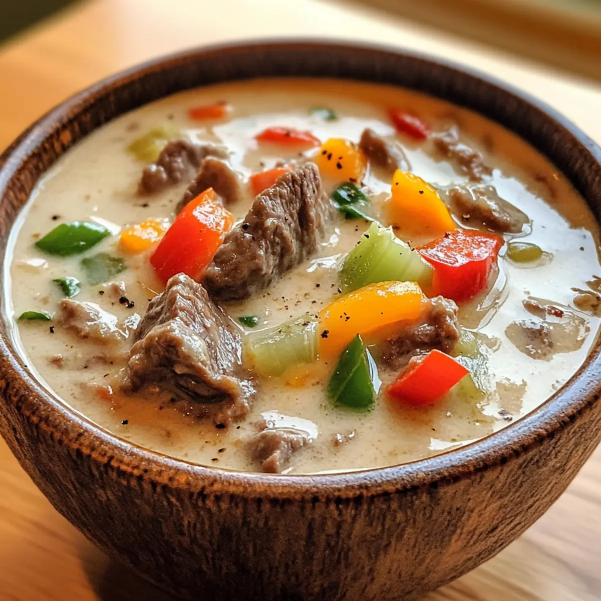 Vielseitigkeit: Diese Käse Steak Suppe lässt sich nach Lust und Laune anpassen – füge zusätzliche Gemüse wie Zucchini oder sogar Pilze hinzu, um für eine gesunde Note zu sorgen.