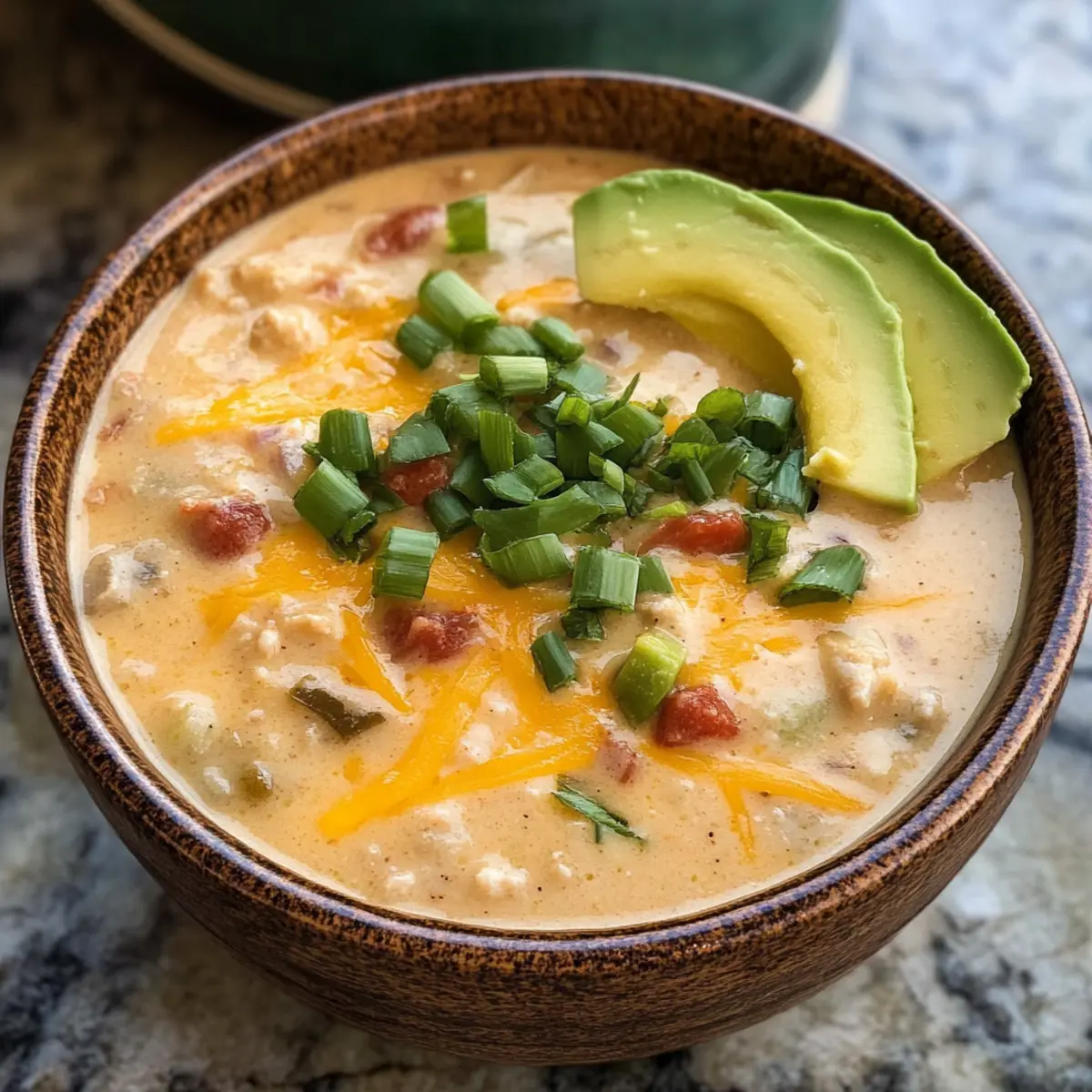 Setze den Deckel auf und füge den soften Frischkäse, die milden grünen Chilis und den geriebenen Cheddar-Käse hinzu. Rühre die Zutaten mit einem Schneebesen um, bis der Käse vollständig geschmolzen und die Suppe cremig ist. Diese Kombination verleiht deiner Käse Suppe die unwiderstehliche, cremige Textur.