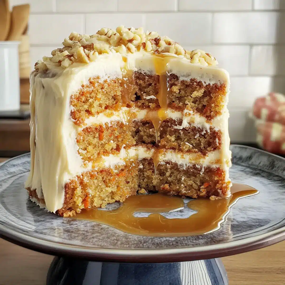 • Tauchen Sie ein in die köstliche Welt dieses Karottenkuchen mit gesalzener Karamell-Frischkäsefüllung, der Ihre Sinne verzaubern wird!
