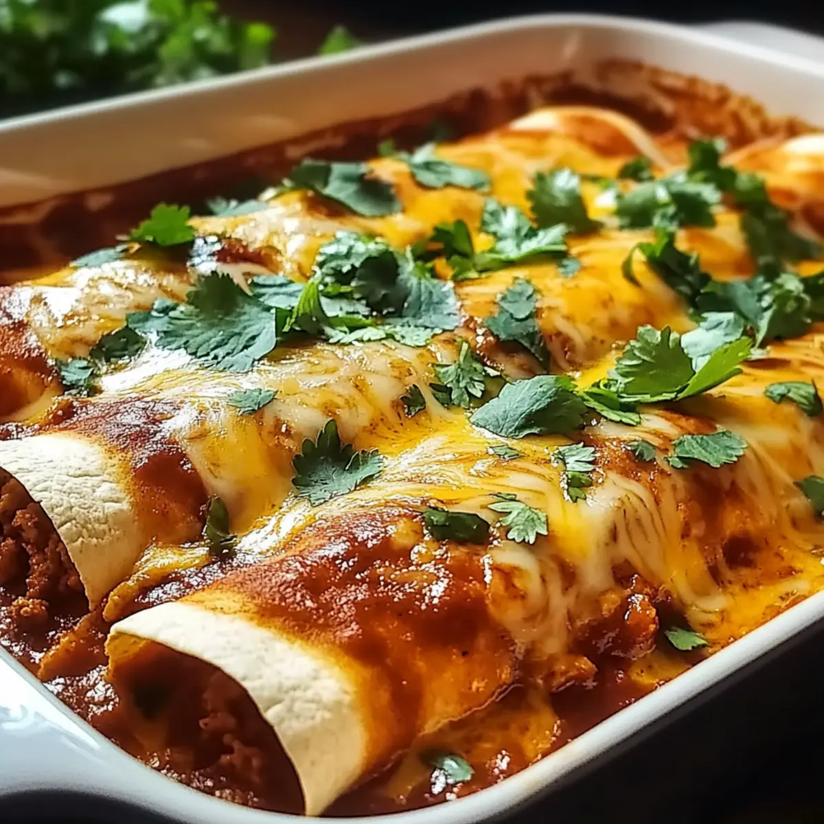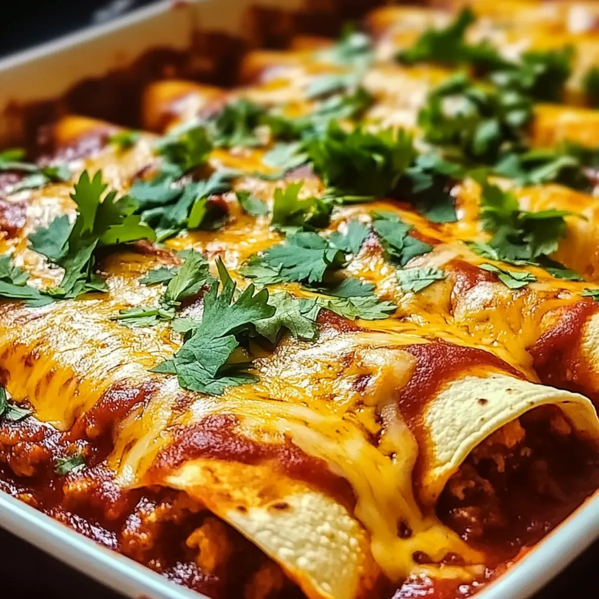 Geschmacksexplosion: Diese Klassischen Rinder-Enchiladas sind ein absolutes Geschmackserlebnis – die Kombination aus gewürztem Rinderhack und der selbstgemachten roten Sauce ist unvergesslich.