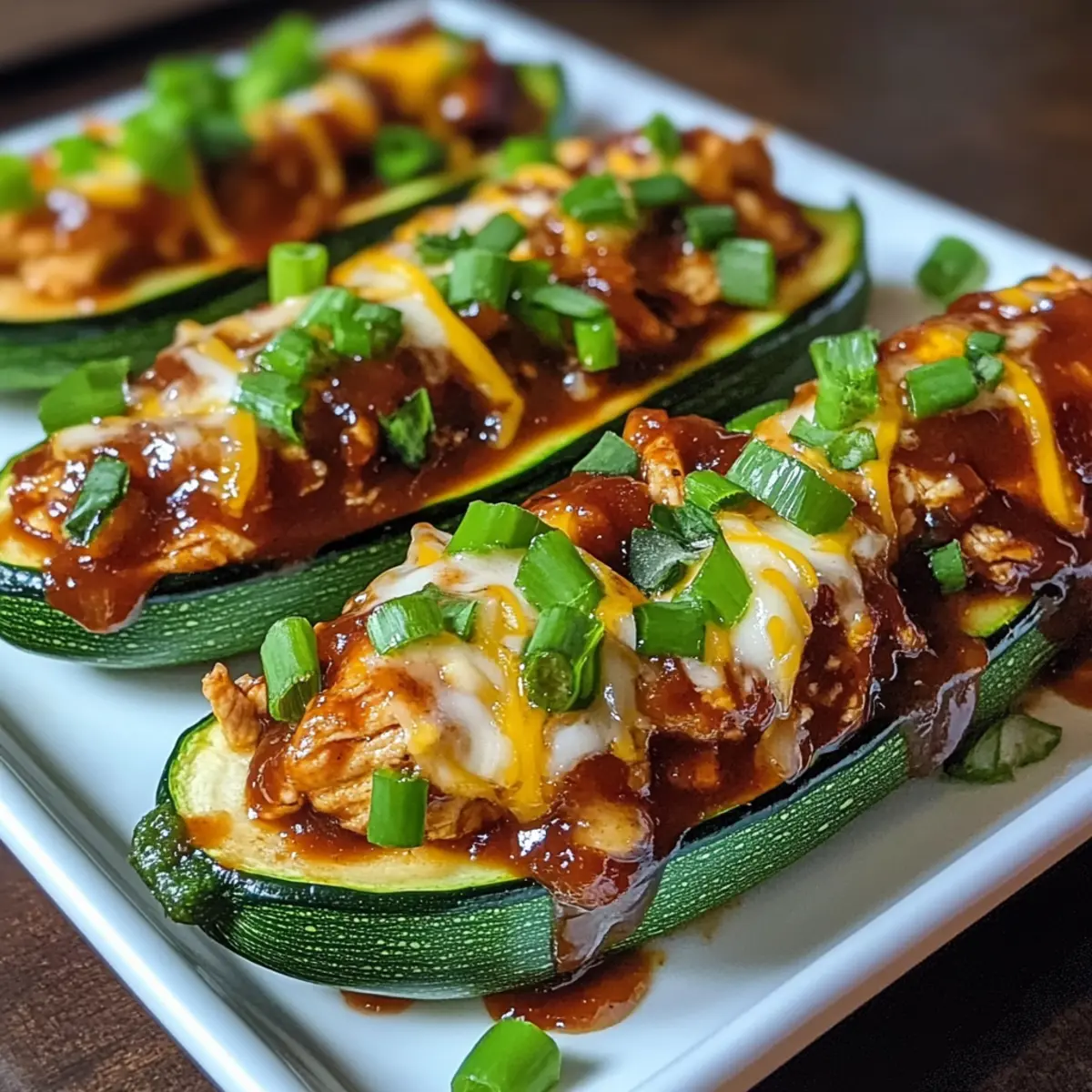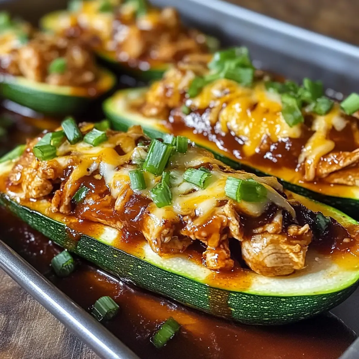 Klebrige BBQ-Hähnchen-Zucchini-Boote für den Sommer
