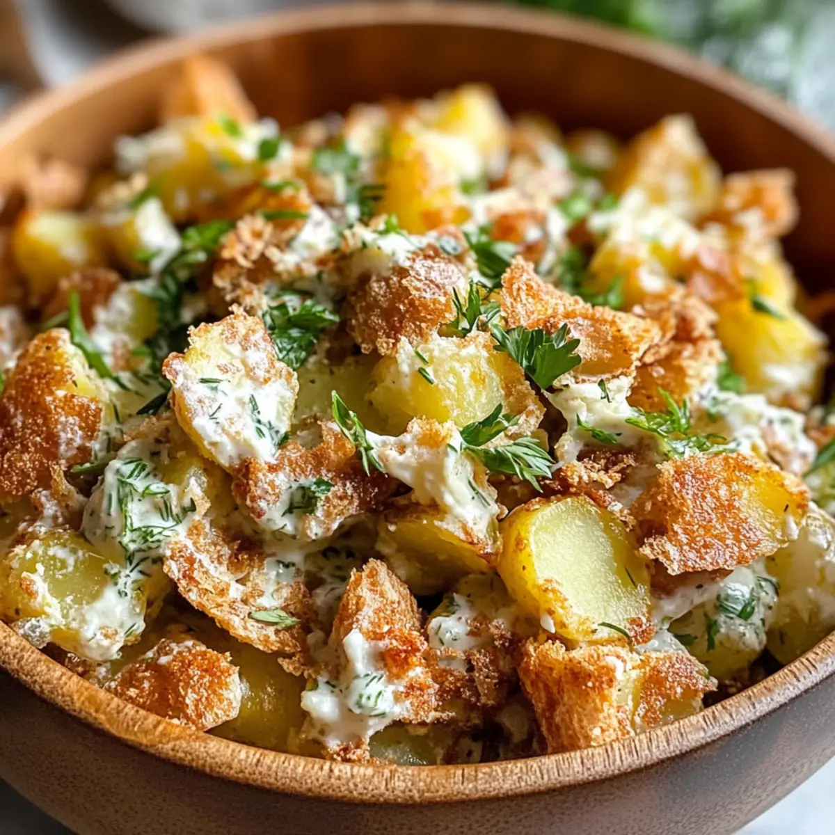 Kreiere diesen knusprigen zerdrückten Kartoffelsalat und beeindrucken deine Gäste mit einer Geschmackskombination, die sie nicht vergessen werden!