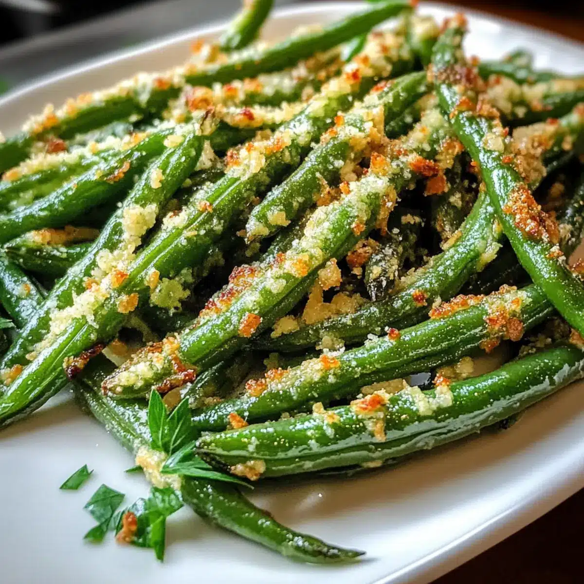 Knoblauch Parmesan geröstete grüne Bohnen zum Verlieben