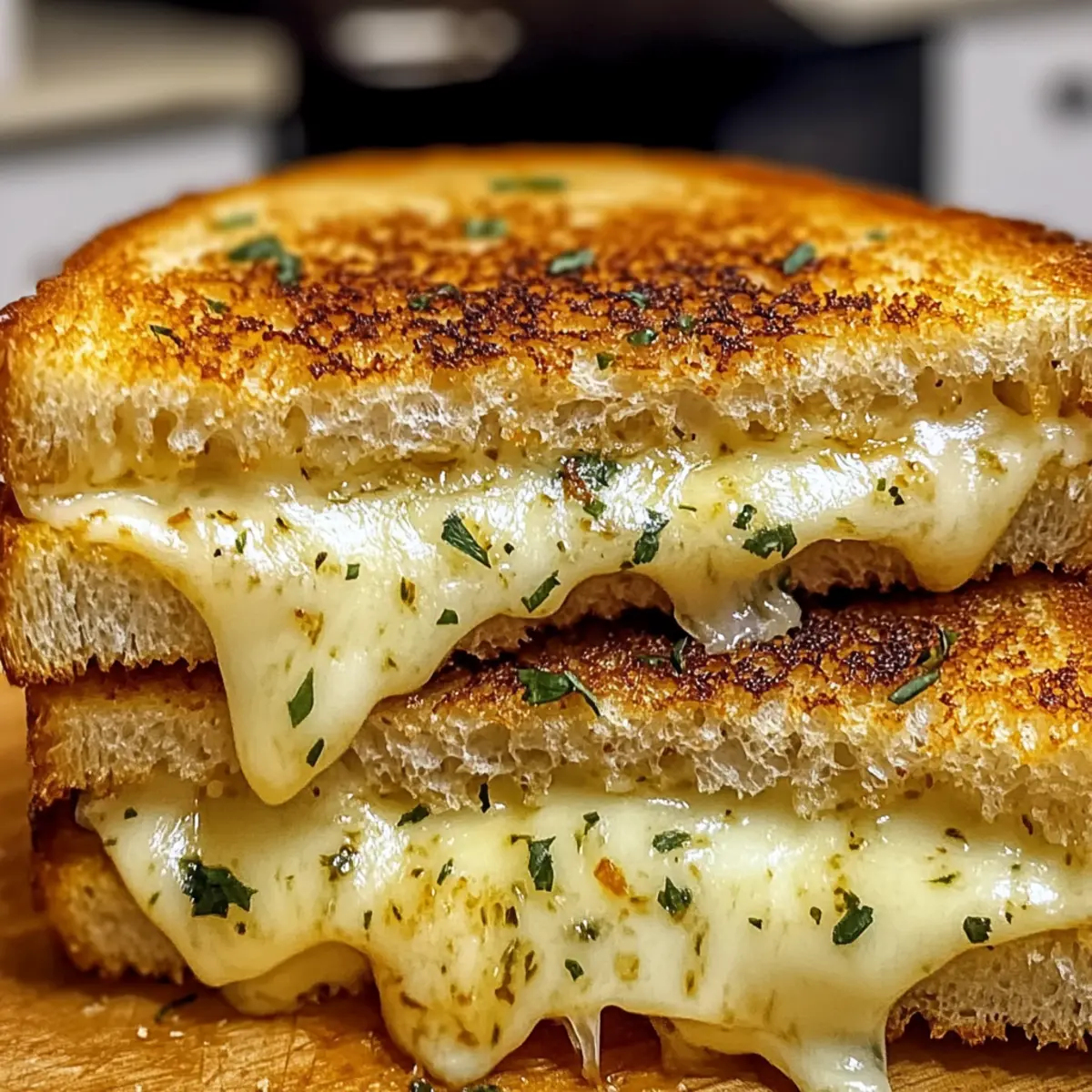 Genieße dieses köstliche Rezept, das die Aromen von Knoblauchbrot und geschmolzenem Käse in einem einzigartigen Gericht vereint!