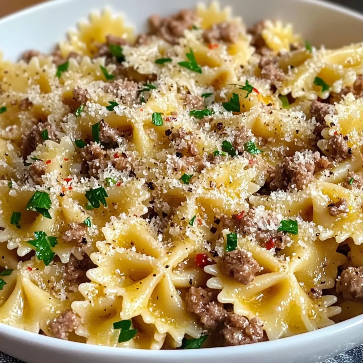 Step-by-Step Instructions for Knoblauchbutter-Schleifenpasta mit Rinderhackfleisch Rezept