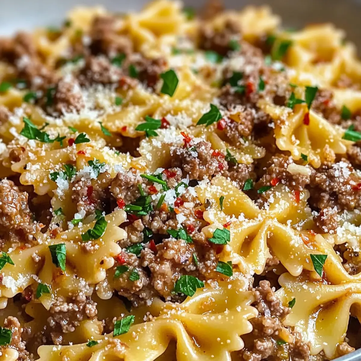 Wenn Sie auf diätetische Einschränkungen achten, können Sie diese Knoblauchbutter-Schleifenpasta Rezept leicht anpassen. Verwenden Sie mageres Rinderhack oder ersetzen Sie das Rinderhack durch eine pflanzliche Alternative für eine vegetarische Variante. Für eine glutenfreie Option können Sie glutenfreie Pasta verwenden. Achten Sie darauf, alle Zutatenetiketten zu überprüfen, um mögliche Allergene zu vermeiden.