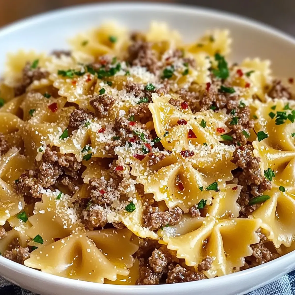 Die Knoblauchbutter-Schleifenpasta mit Rinderhackfleisch Rezept ist ein wahrer Genuss, der nicht nur einfach zuzubereiten ist, sondern auch Ihre Geschmacksknospen verzaubern wird!