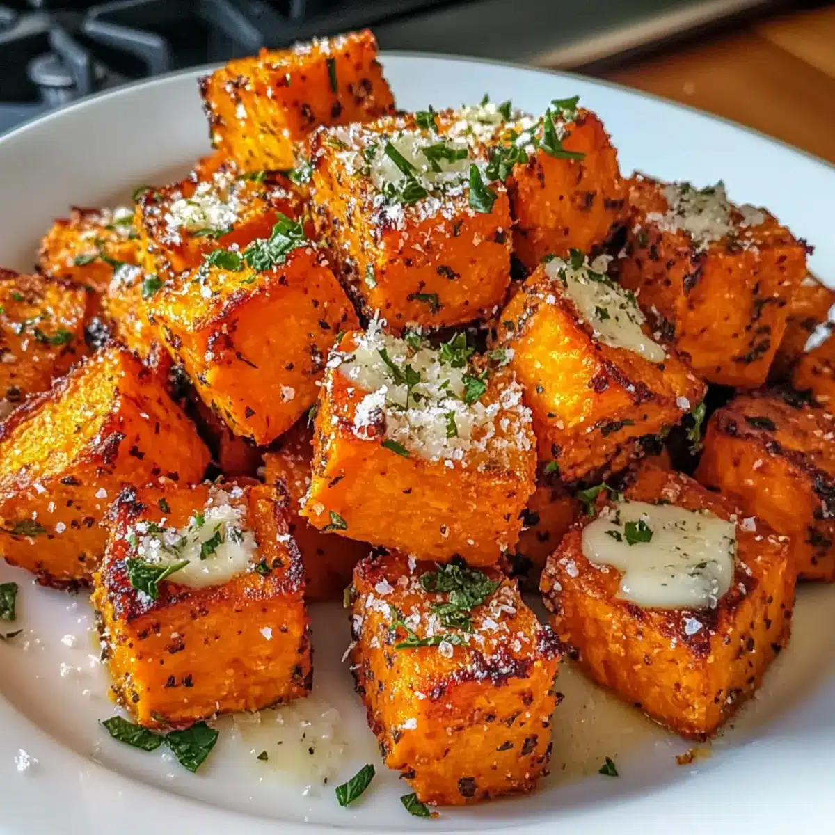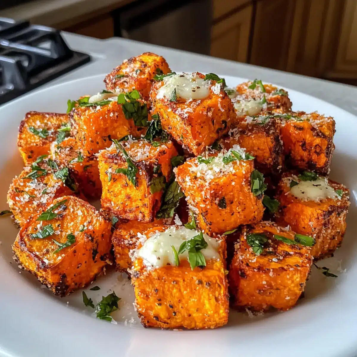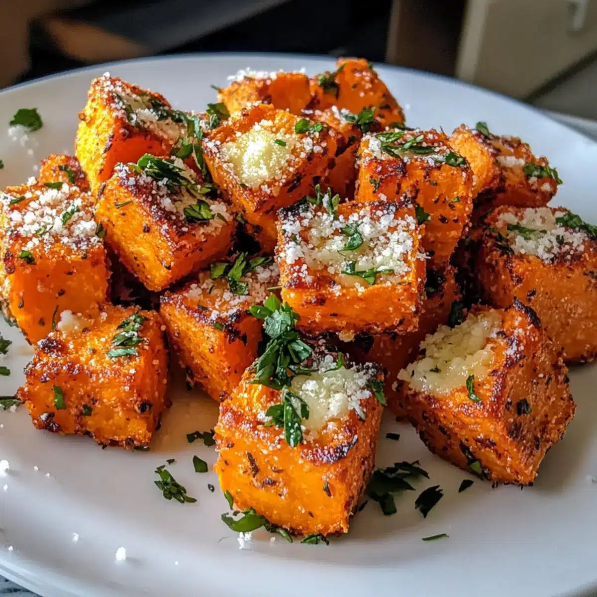 Knusprige Gebackene Süßkartoffelbissen mit Parmesan Kräuterbutter