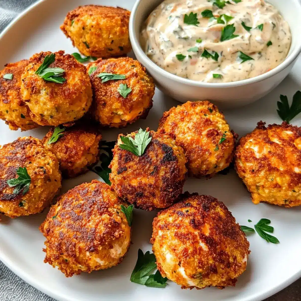 Sobald die Kroketten goldbraun und knusprig sind, lasse sie auf Küchenpapier abtropfen und würze sie sofort mit einer Prise Salz. Garniere die Knusprigen Pfannen gebratenen Lachs-Kroketten mit gehackter frischer Petersilie und serviere sie sofort mit der vorbereiteten Remoulade.